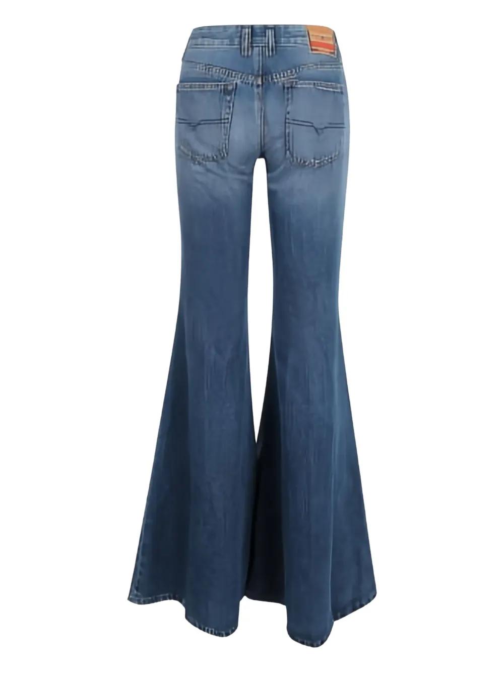 blue wide leg front button and zip fastening belt loops classic five pockets