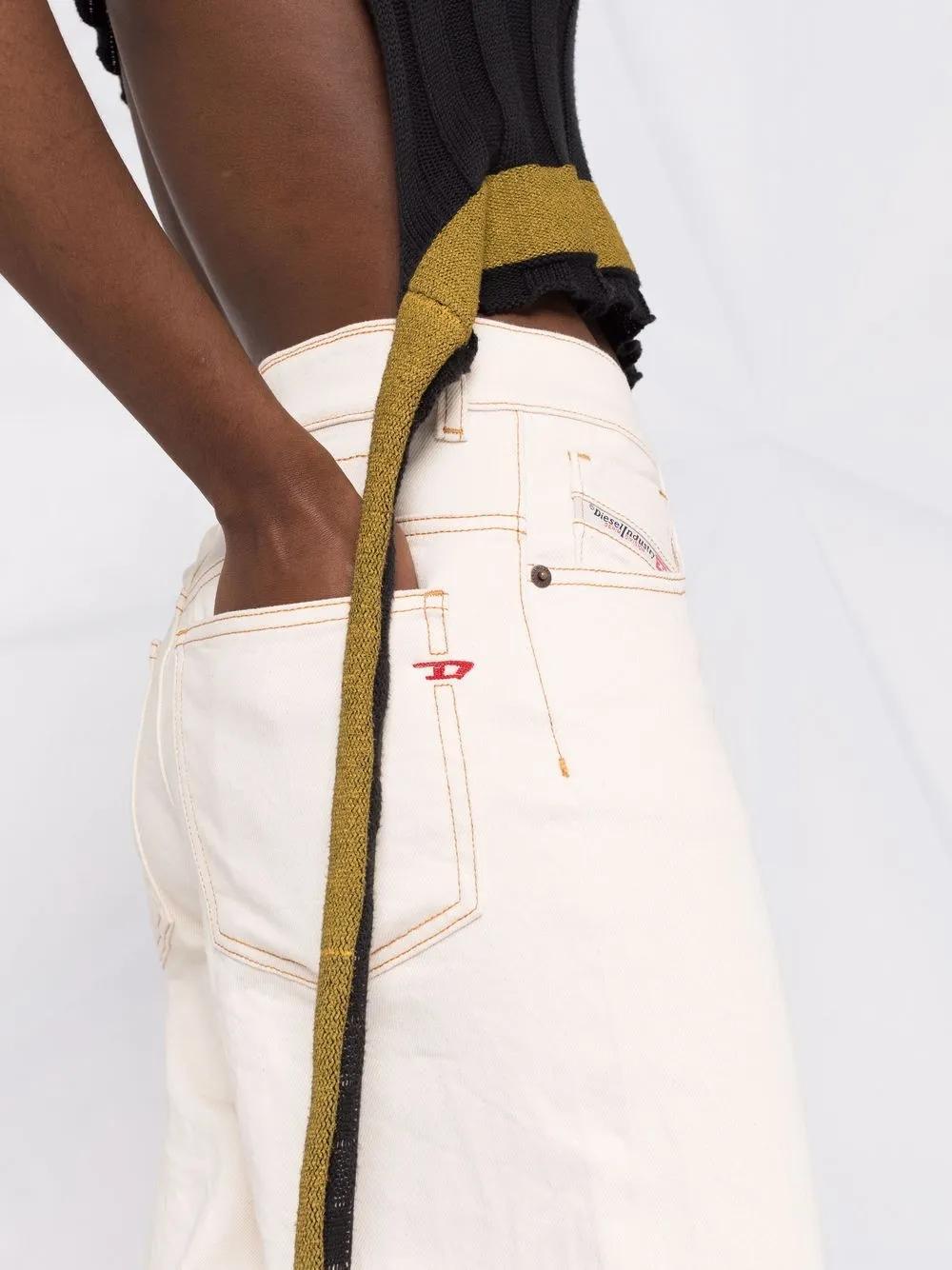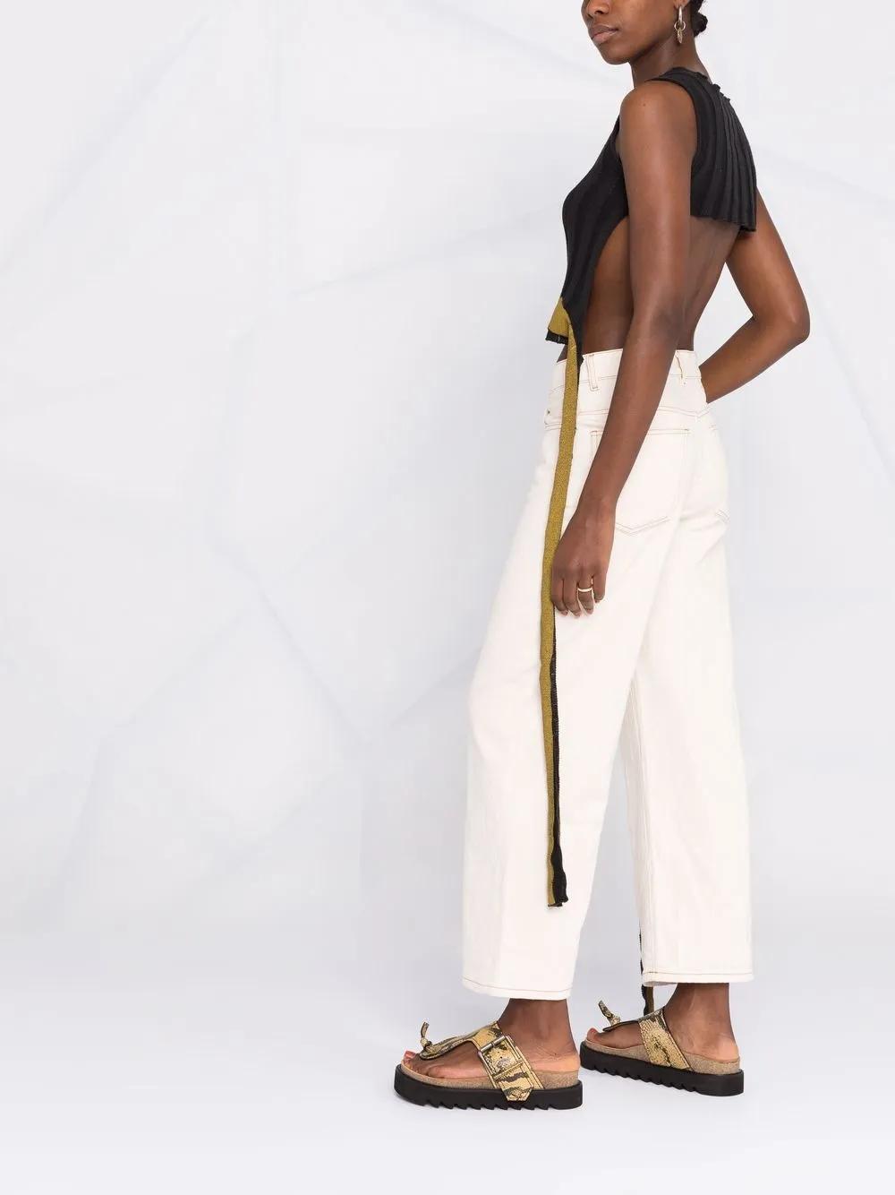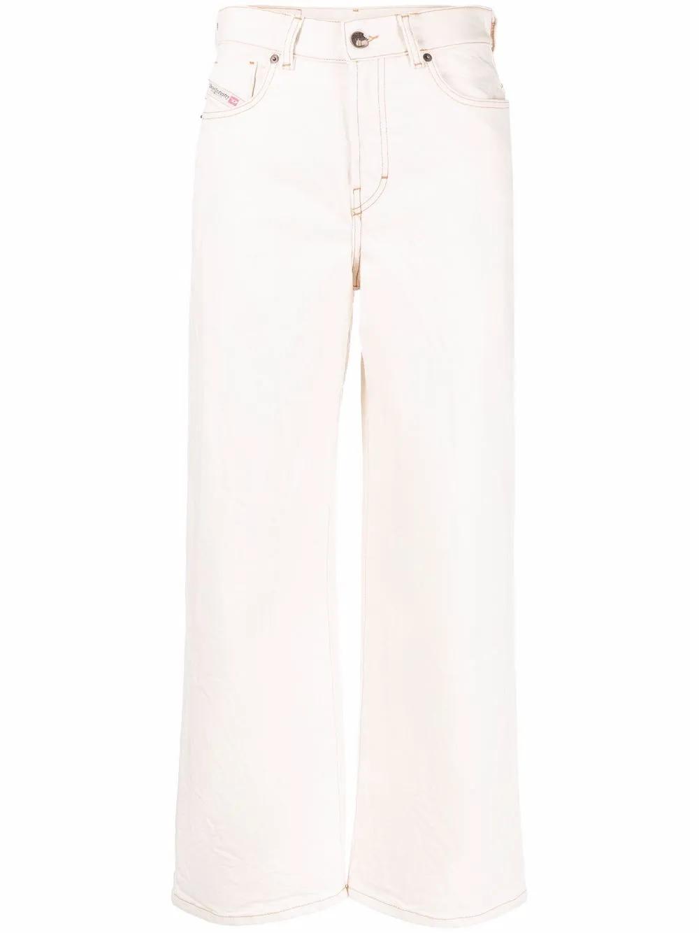off-white stretch-cotton front button and zip fastening belt loops classic five pockets logo patch to the front contrast stitching straight leg cropped