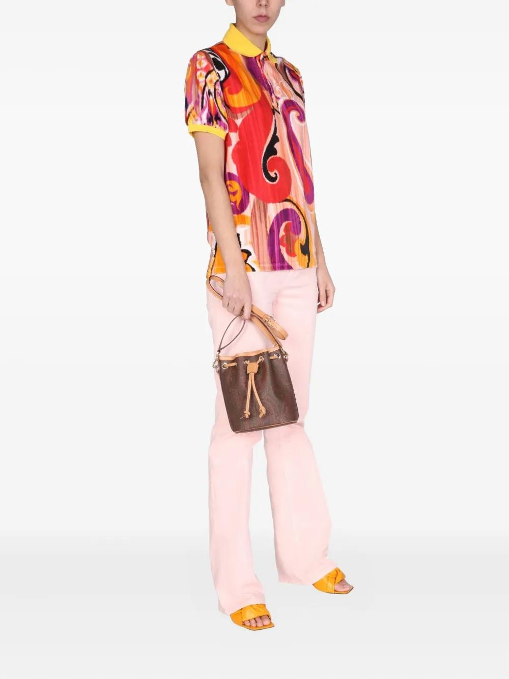 beige front button fastening pleated detailing wide-leg belt loops side slit pockets rear patch pockets rear logo patch