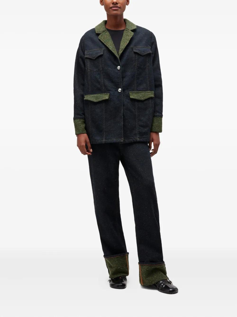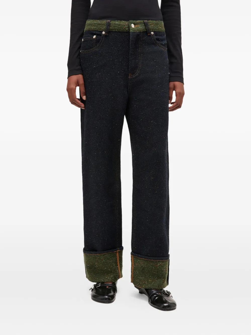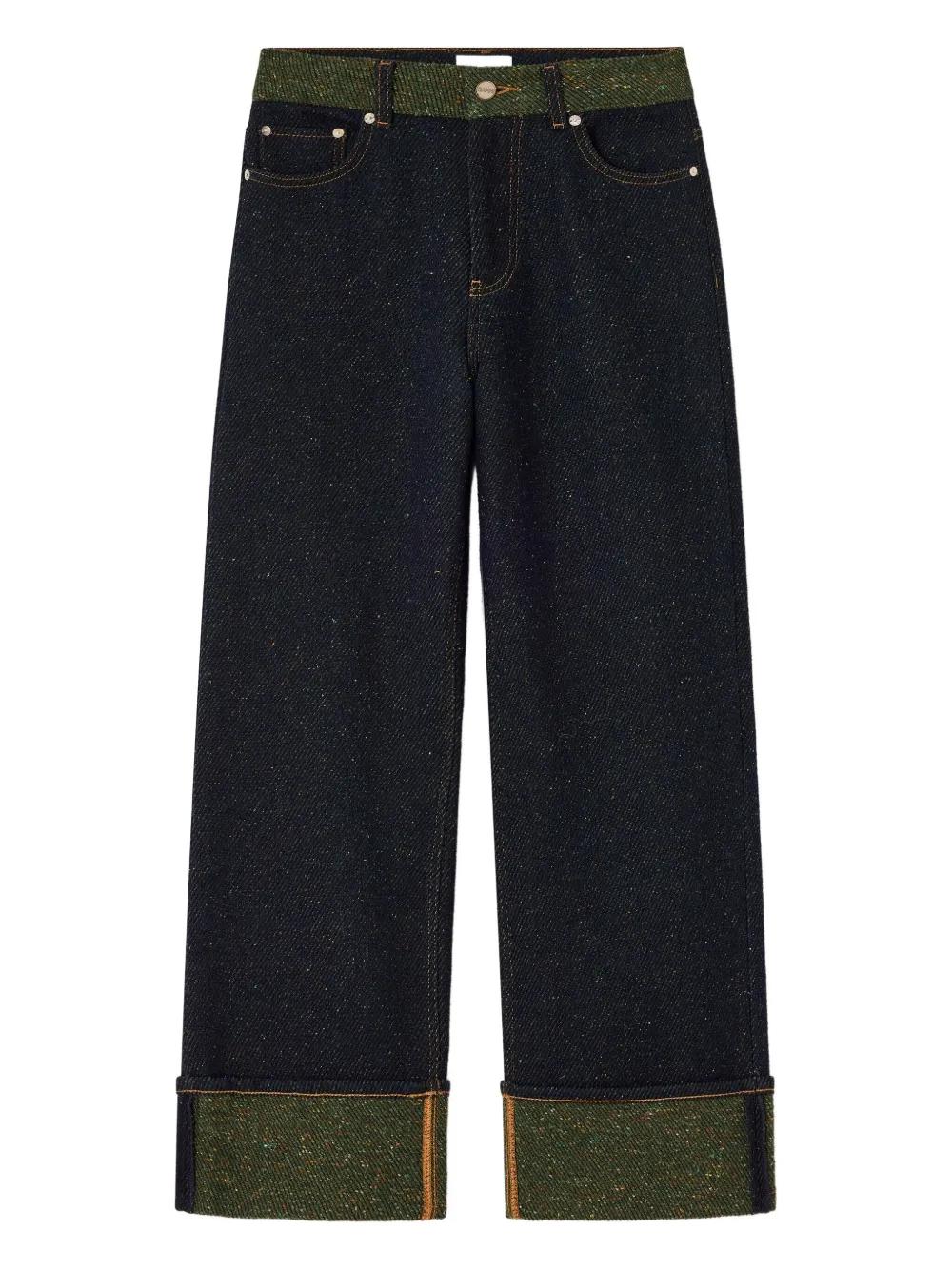 blue wide leg front button and zip fastening belt loops classic five pockets