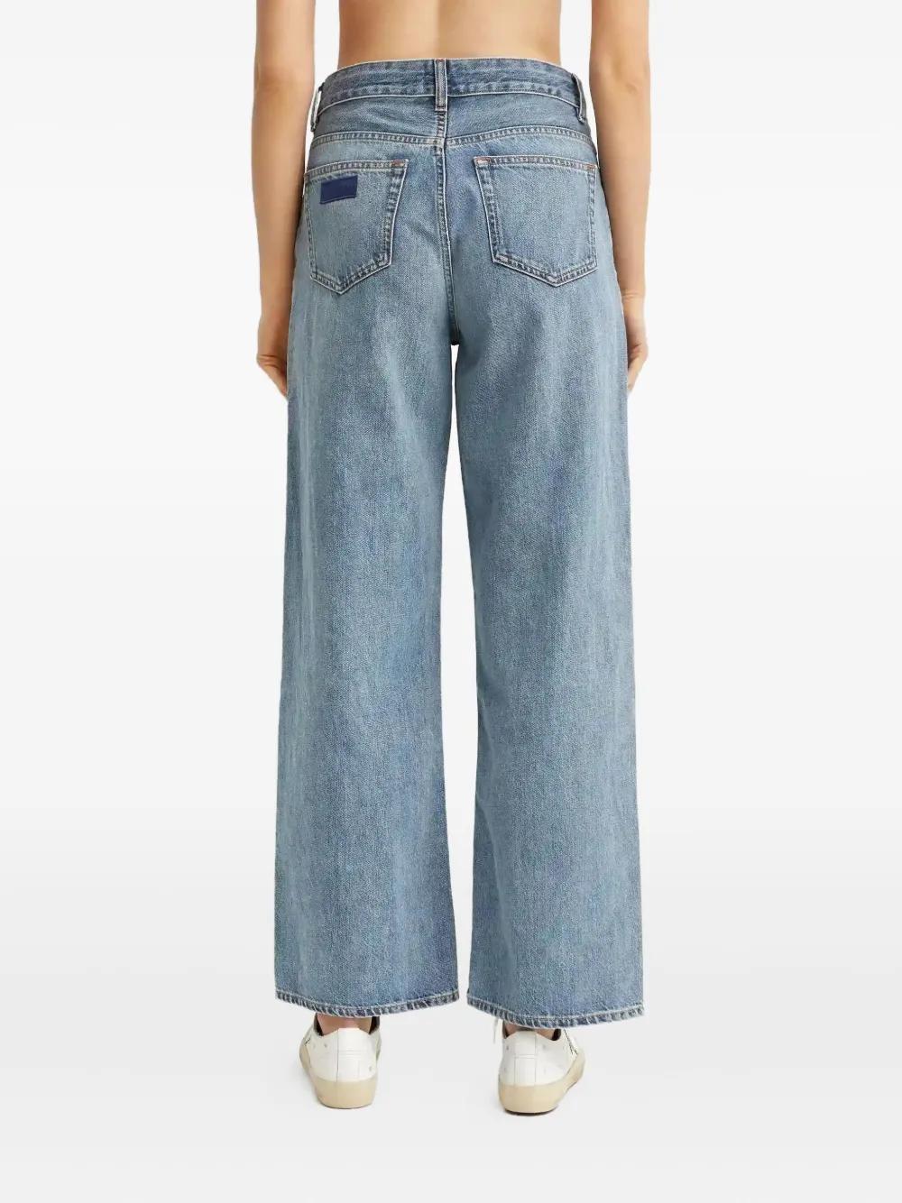 blue logo patch belt loops five pockets button fastening