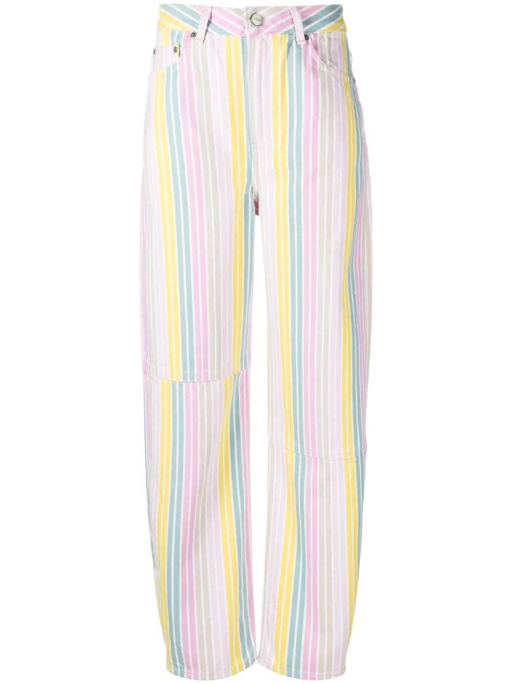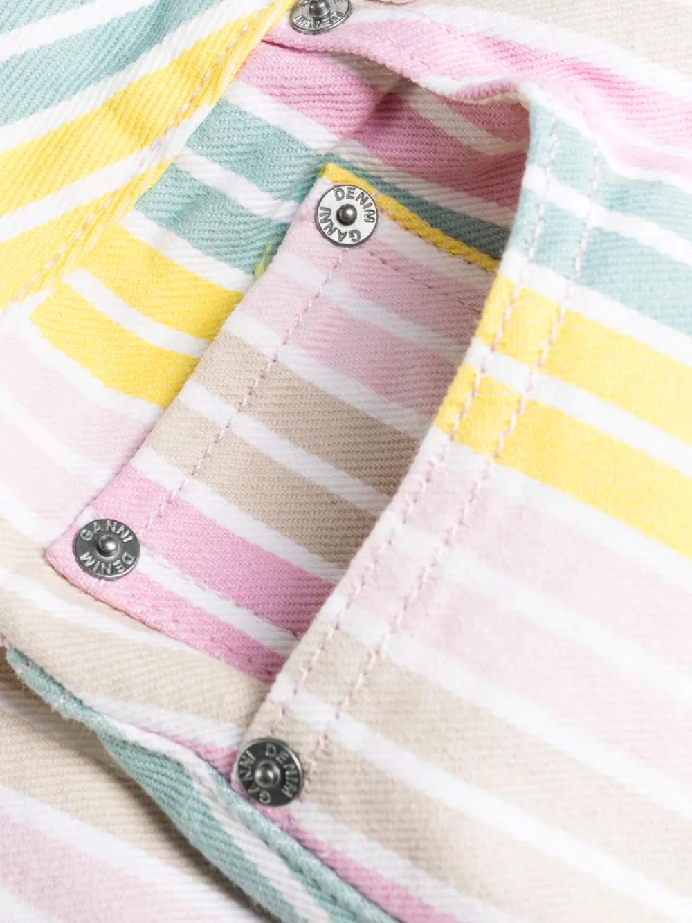 multicolour organic cotton denim vertical stripe print mid-rise belt loops button fly fastening classic five pockets tapered leg