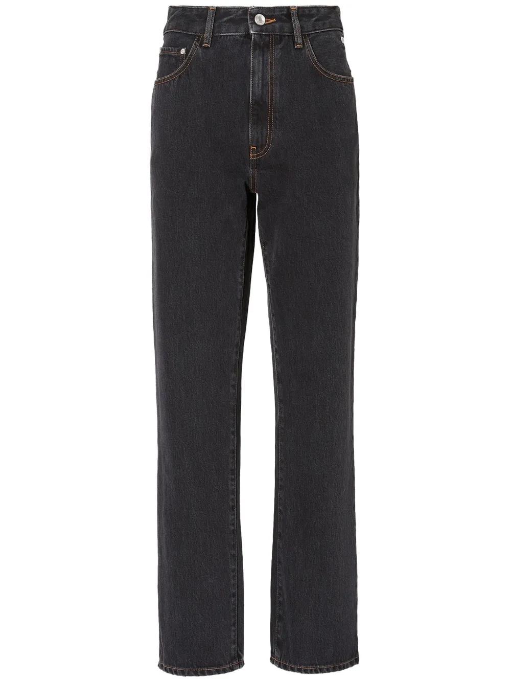 black cotton denim rhinestone embellishment front button and zip fastening belt loops classic five pockets mid-rise straight leg