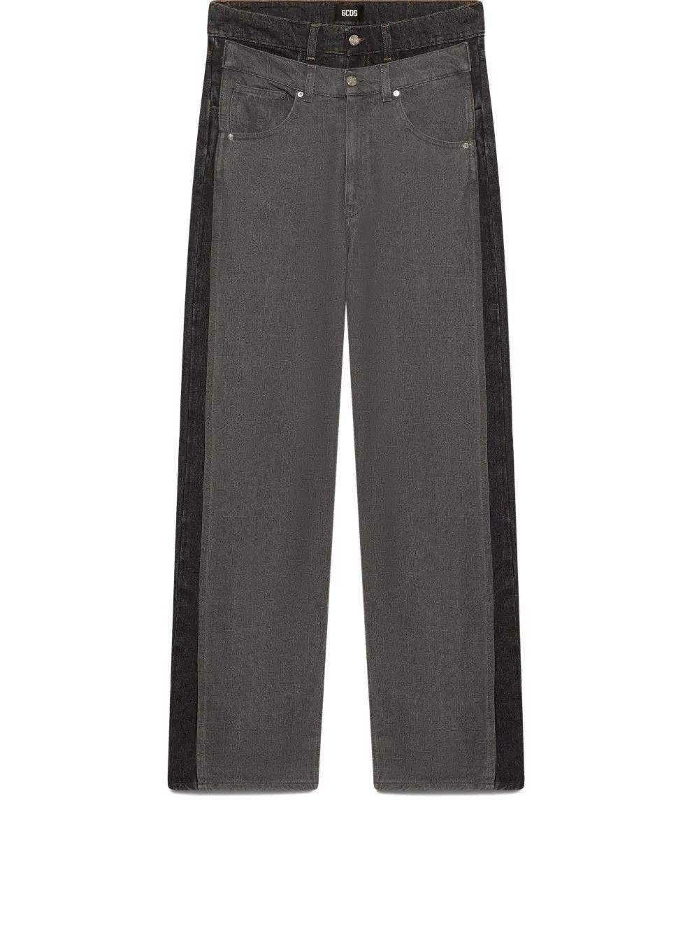 grey panelled design side stripe detail front button fastening belt loops five pockets