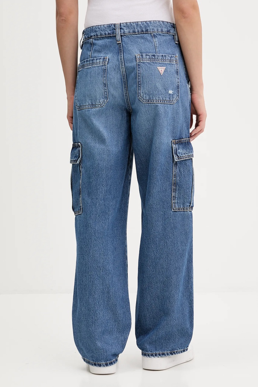 - GUESS AIRWASH™ to zrównoważony sposób prania denimu. W tym procesie stosuje się ekologiczne metody zapewniające oszczędność wody oraz energii. - GUESS JEANS® wykorzystuje do wykonania swoich produktów materiały pochodzące z recyklingu bez obniżenia ich jakości i trwałości. - Jeansy luźne w okolicy bioder i ud. - Prosta nogawka na całej długości. - Model z podwyższoną talią i zapięciem na guzik i suwak. - Dwie wsuwane kieszenie boczne. - Dwie wsuwane kieszenie na pośladkach. - Kieszenie typu cargo zapewniają dodatkową przestrzeń do przechowywania drobnych przedmiotów. - Szerokość w pasie: 39 cm. - Szerokość w biodrach: 53 cm. - Wysokość stanu: 27 cm. - Szerokość nogawki na dole: 23 cm. - Szerokość nogawki: 30 cm. - Długość zewnętrzna nogawki: 103 cm. - Wymiary podane dla rozmiaru: 28/30.