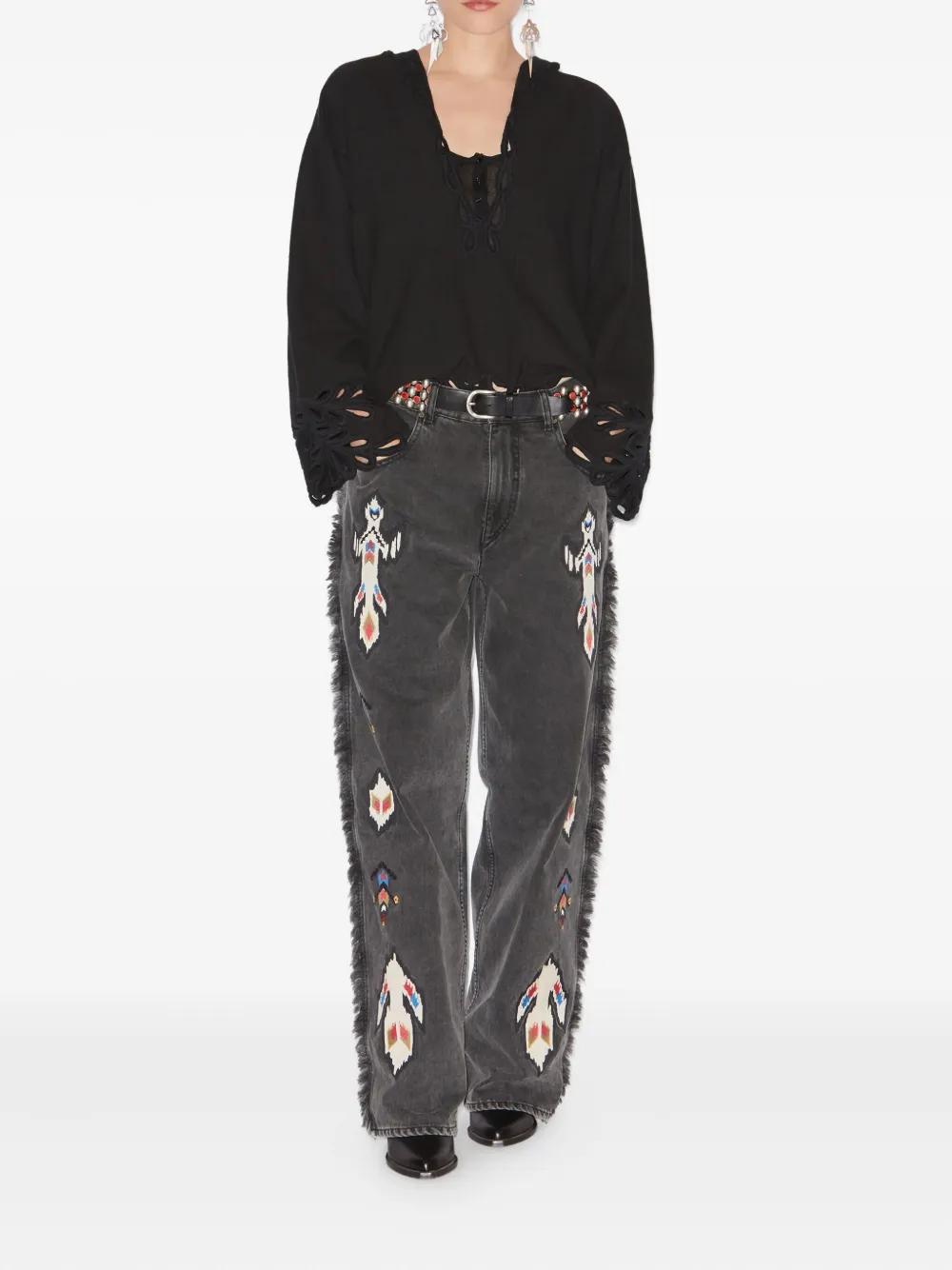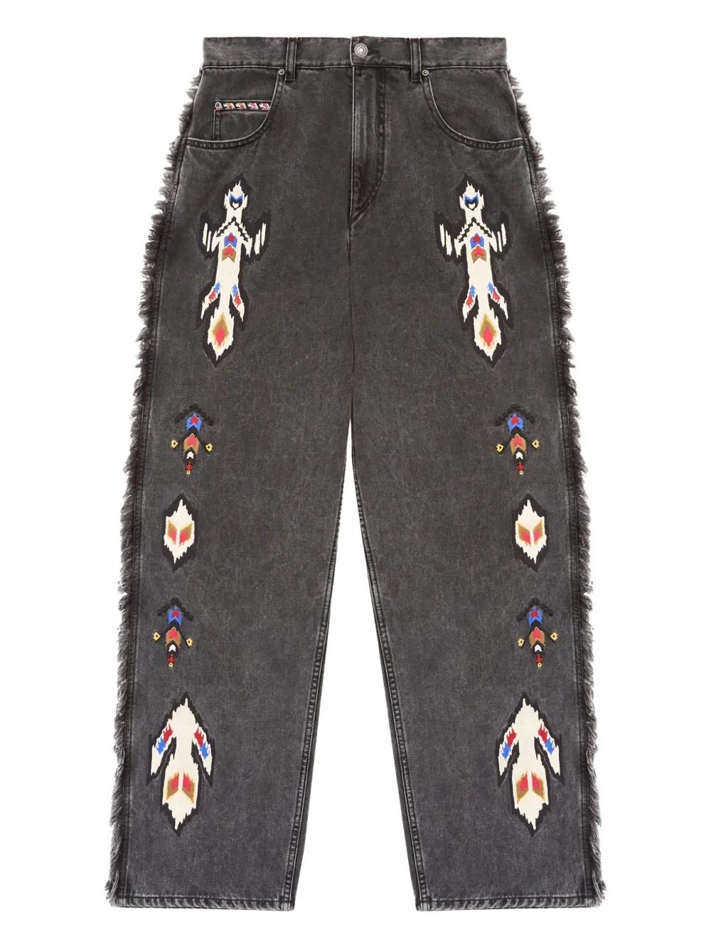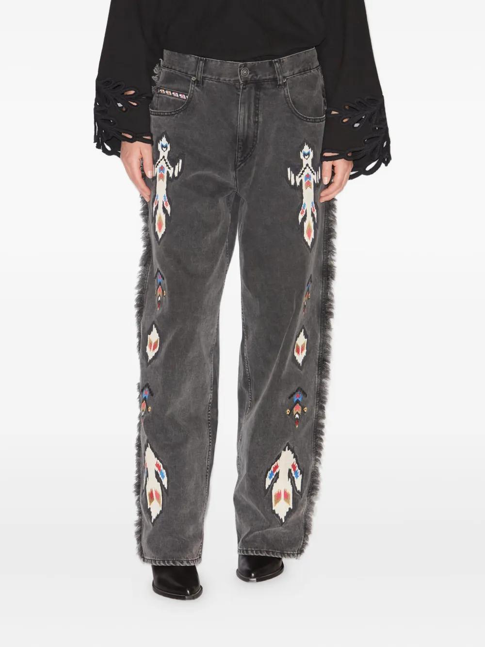 ISABEL MARANT Maella fringed embroidered jeans - Grey