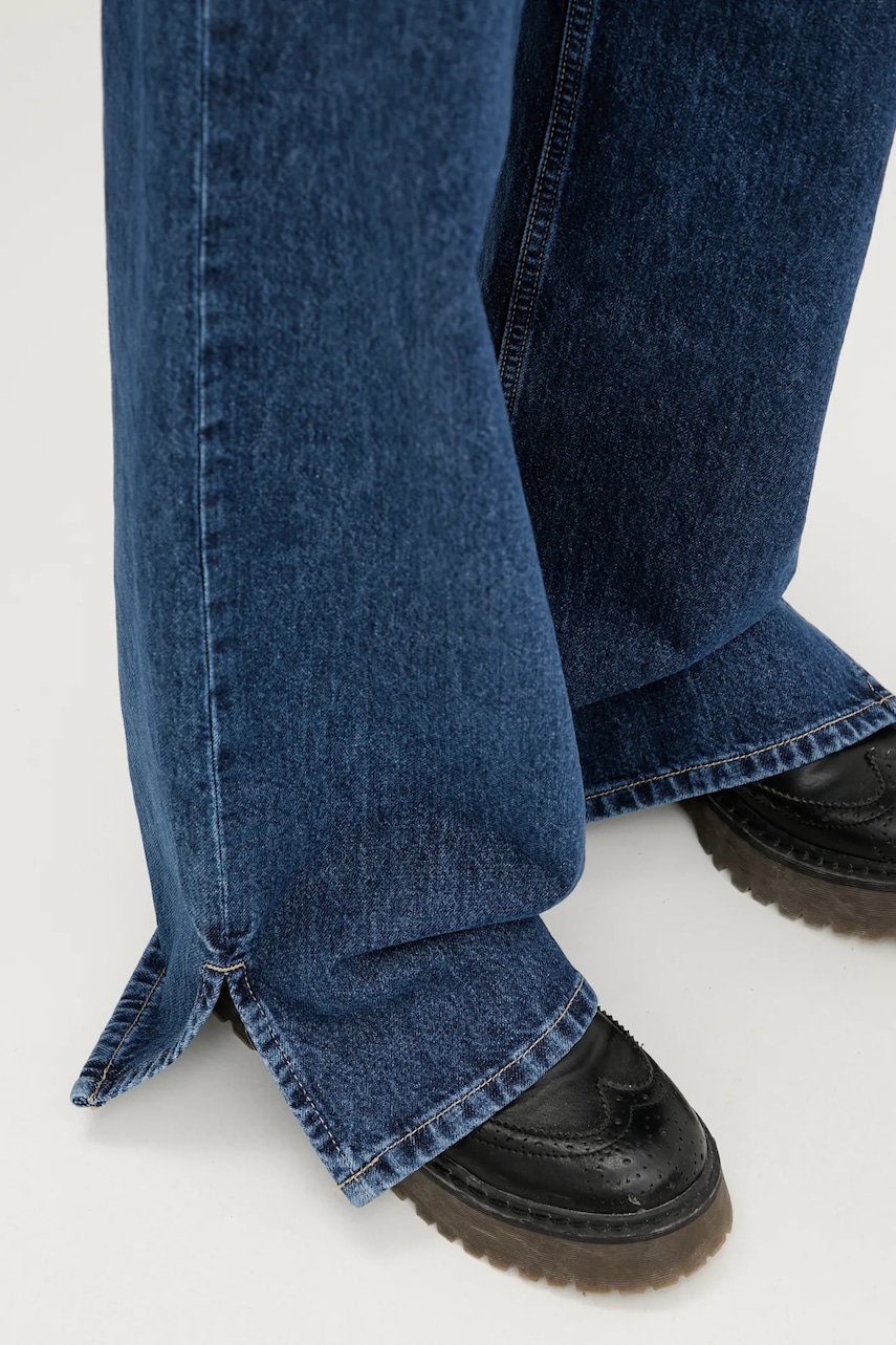 - Bawełna organiczna uprawiana jest bez użycia niebezpiecznych dla zdrowia substancji chemicznych, chemicznych środków szkodnikobójczych czy nawozów sztucznych. - Model z podwyższoną talią i zapięciem na guzik i suwak. - Z przodu trzy wsuwane kieszenie. - Dwie wsuwane kieszenie na pośladkach. - Szerokość w pasie: 37 cm. - Szerokość w biodrach: 48 cm. - Wysokość stanu: 26 cm. - Szerokość nogawki na dole: 28 cm. - Szerokość nogawki: 32 cm. - Długość wewnętrzna nogawki: 82 cm. - Wymiary podane dla rozmiaru: 27/32.