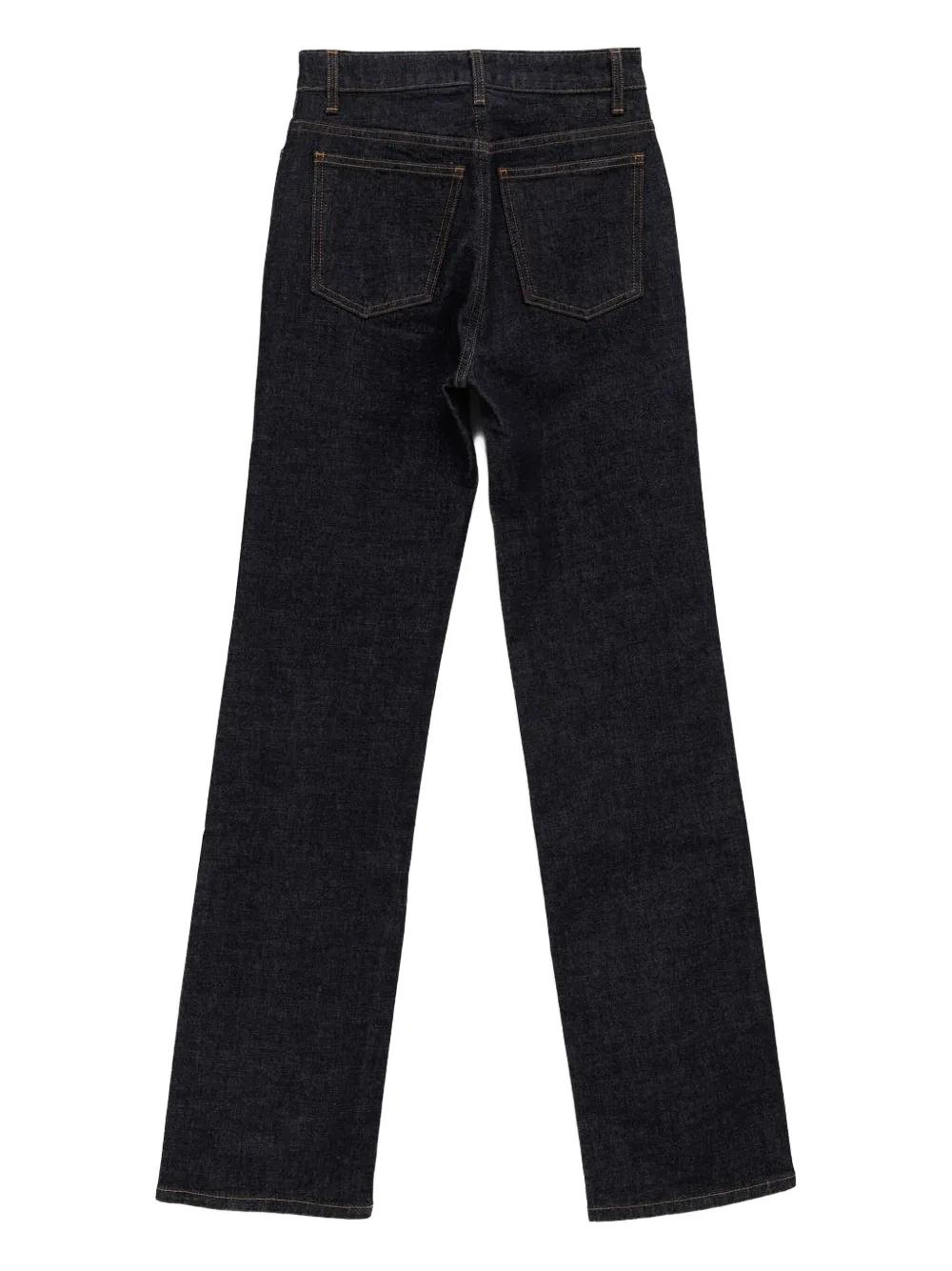 blue button fastening button embellishment contrast stitching five-pockets belt loops