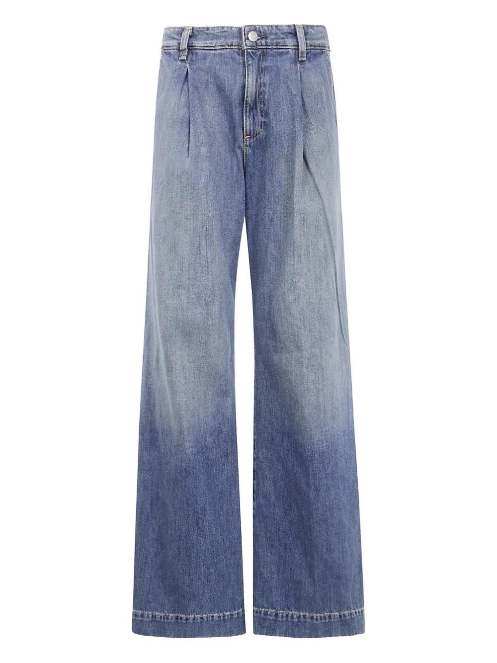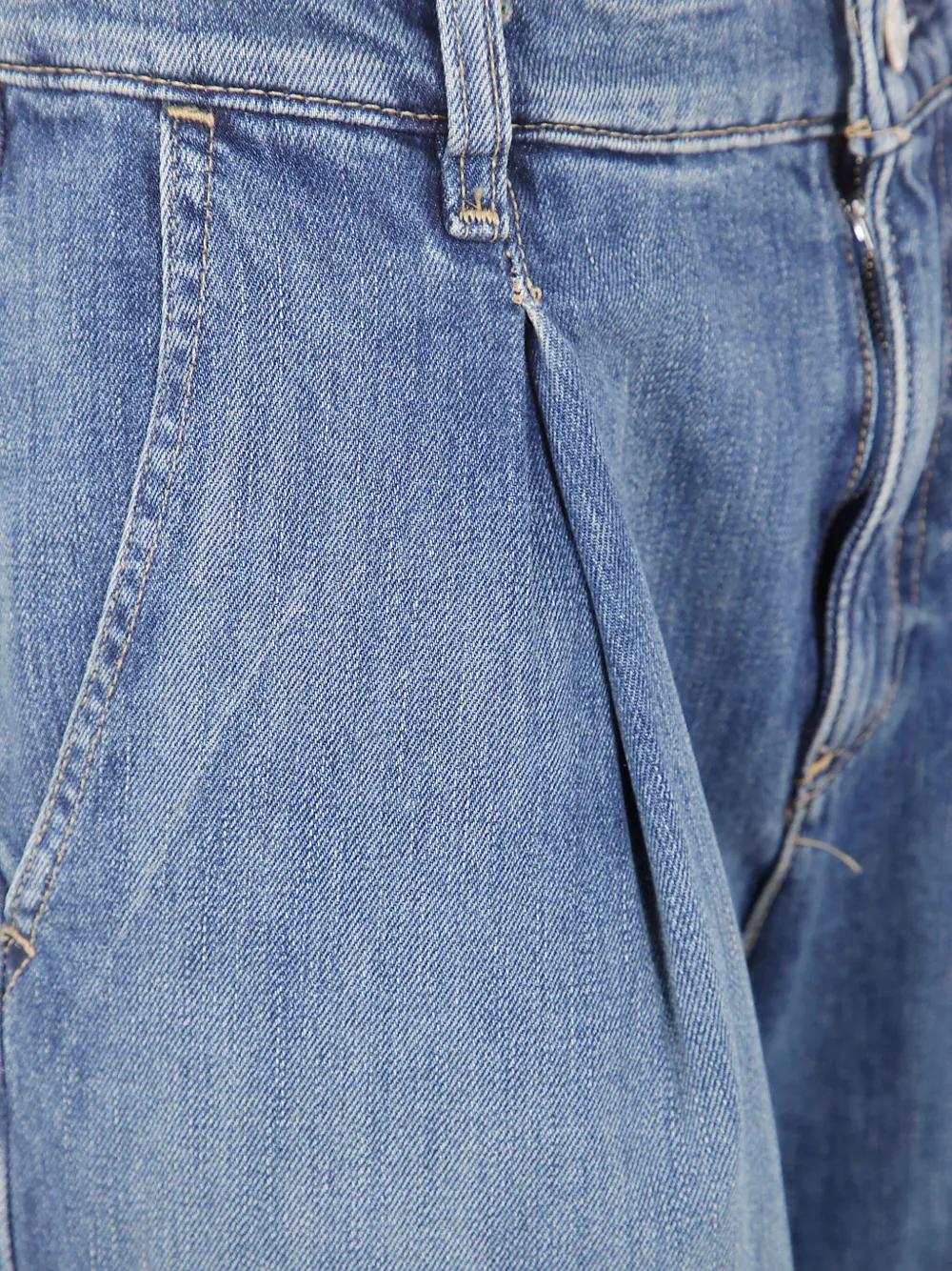 light blue pleated detail wide leg button fly front pockets back pockets