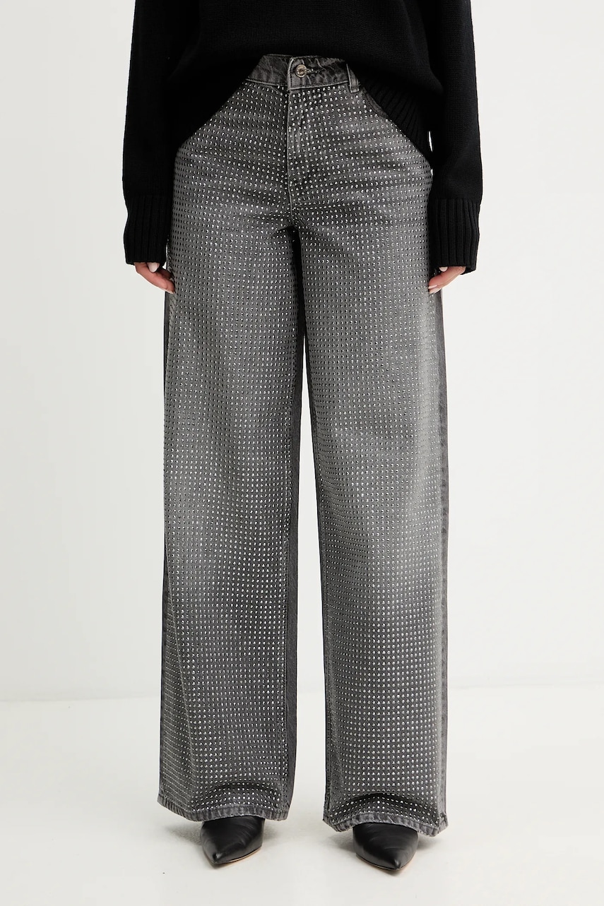 Uwaga: oryginalna rozmiarówka produktów tej marki jest rozmiarówką włoską. Informujemy, że rozmiary na metkach mogą różnić się od zamawianych ze względu na zastosowany przelicznik. - Model z podwyższoną talią i zapięciem na guzik i suwak. - Z przodu trzy wsuwane kieszenie. - Dwie wsuwane kieszenie na pośladkach. - Model z dżetami. - Szerokość w pasie: 35 cm. - Szerokość w biodrach: 43 cm. - Wysokość stanu: 29 cm. - Szerokość nogawki: 30 cm. - Szerokość nogawki na dole: 28 cm. - Długość wewnętrzna nogawki: 82 cm. - Wymiary podane dla rozmiaru: 27.