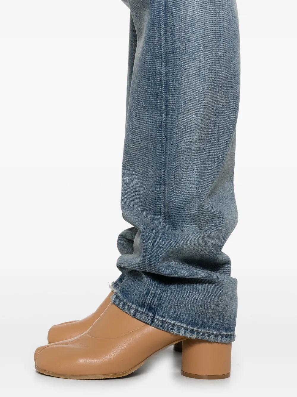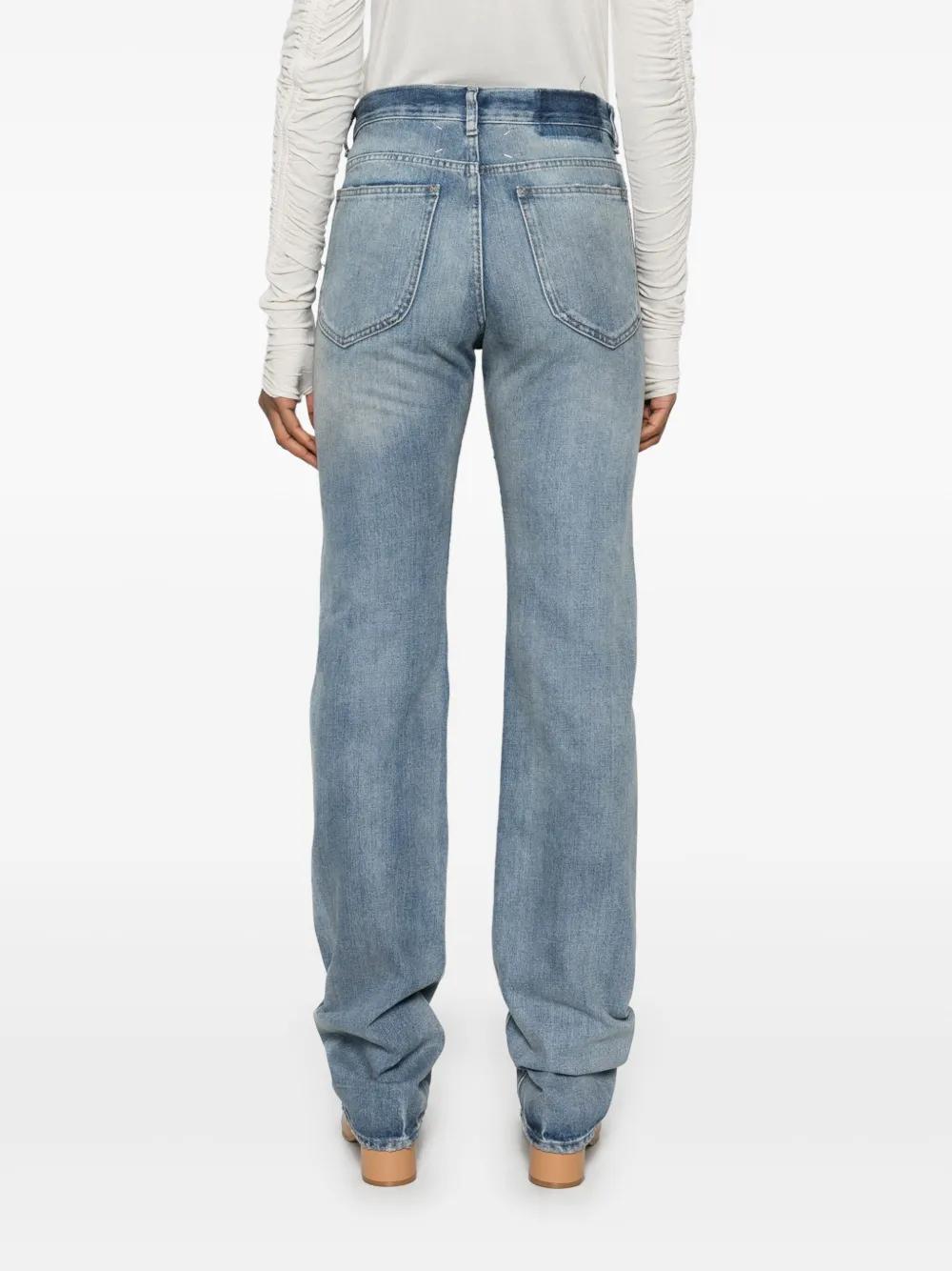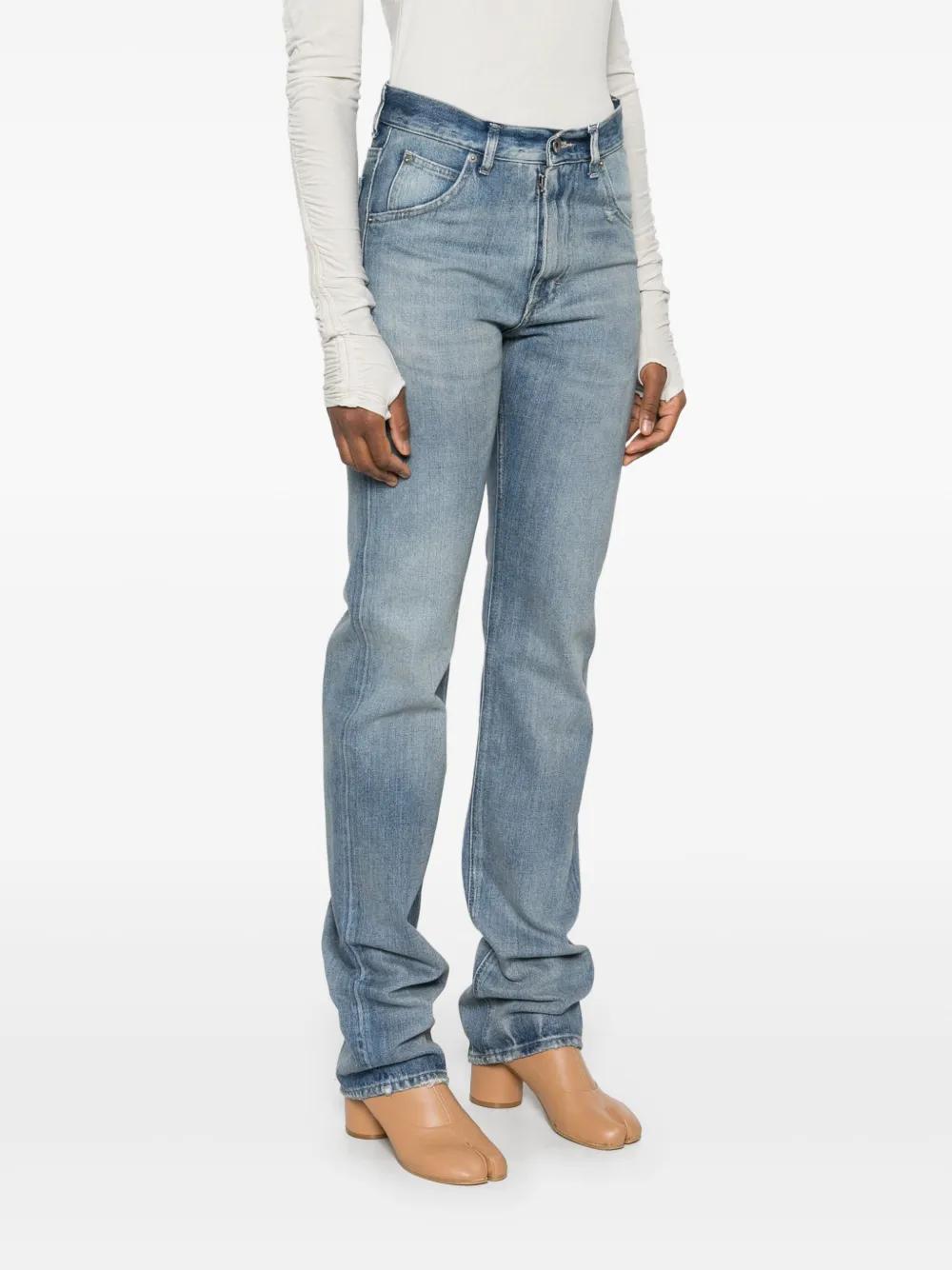 light blue concealed fly and button fastening belt loops classic five pockets signature four-stitch logo