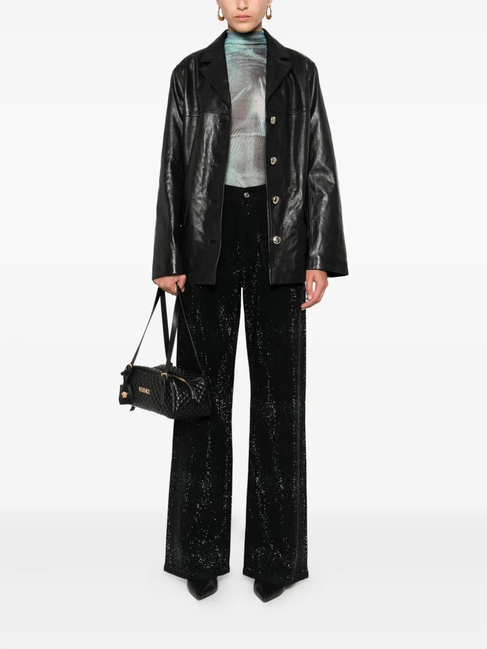 black embellishment five pockets button fastening calfskin jacron