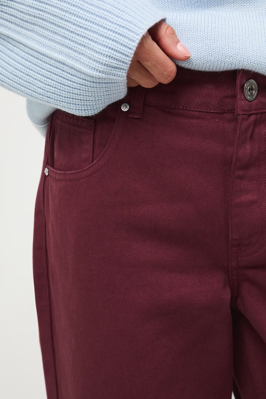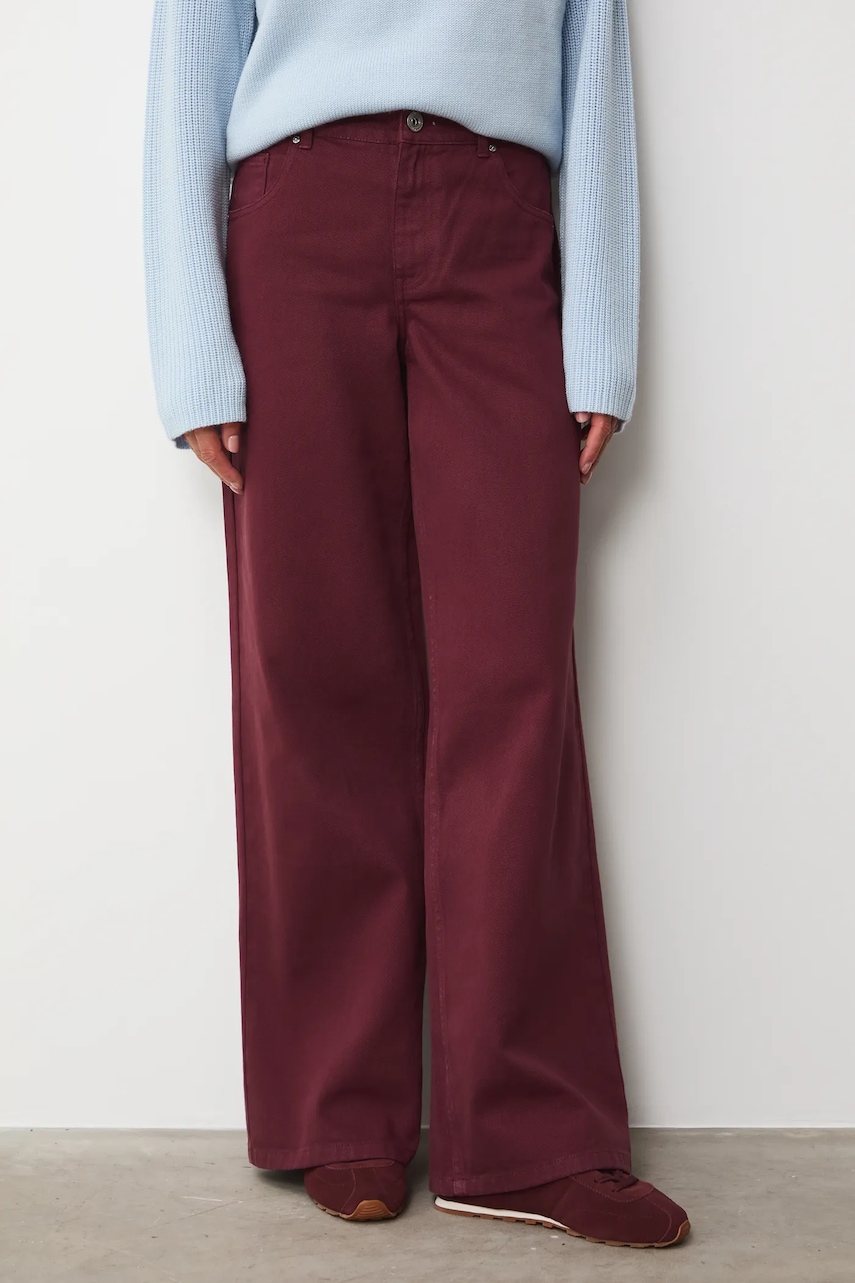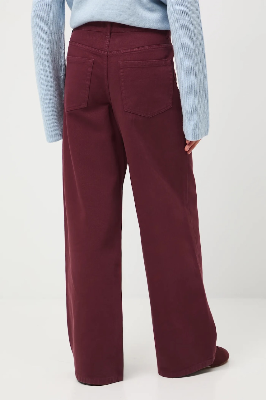 - Fason wide leg - jeansy lekko dopasowane w okolicy bioder z charakterystyczną szeroką nogawką, która stopniowo poszerza się od talii, aż do samego dołu. Krój akcentuje wcięcie w talii, a luźny dół nie krępuje ruchów. - Model z podwyższoną talią i zapięciem na guzik i suwak. - Wsuwane kieszenie. - Szeroka nogawka. - Gładki materiał. - Szerokość w pasie: 38 cm. - Szerokość w biodrach: 49 cm. - Wysokość stanu: 26 cm. - Szerokość nogawki na dole: 29 cm. - Długość wewnętrzna nogawki: 82 cm. - Wymiary podane dla rozmiaru: 36.
