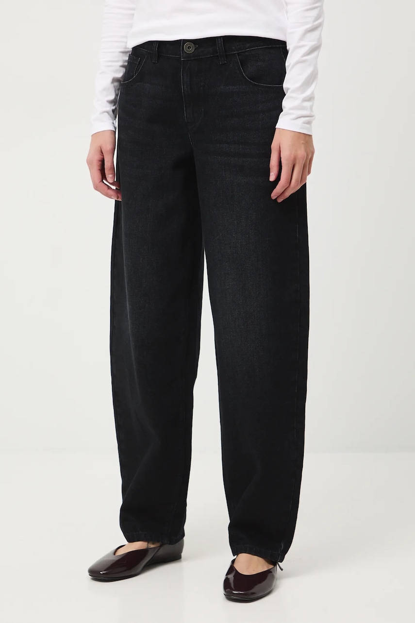 - Fason slouchy - jeansy charakteryzują się oversize’owym krojem oraz szeroką nogawką, która zwęża się przy samej kostce. Ich luźniejsza forma nie krępuje ruchów, gwarantując wygodę i komfort noszenia. - Model z regularną talią i zapięciem na guzik i suwak. - Wsuwane kieszenie. - Delikatnie sprany denim. - Szerokość w pasie: 38 cm. - Szerokość w biodrach: 50 cm. - Wysokość stanu: 25 cm. - Szerokość nogawki na dole: 20 cm. - Długość wewnętrzna nogawki: 80 cm. - Wymiary podane dla rozmiaru: 36.