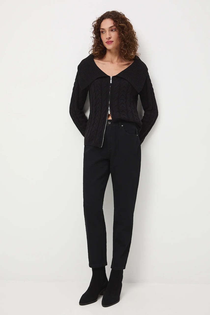 - Fason slim - jeansy o dopasowanym kroju z wąską nogawką, zarówno w okolicach ud, jak i kostki. Podkreślają naturalną linię sylwetki, lecz jej nie opinają - są komfortowe w codziennym użytkowaniu. - Model z regularną talią i zapięciem na guzik i suwak. - Wsuwane kieszenie. - Gładki materiał. - Szerokość w pasie: 36 cm. - Szerokość w biodrach: 48 cm. - Wysokość stanu: 27 cm. - Szerokość nogawki na dole: 18 cm. - Długość wewnętrzna nogawki: 69 cm. - Wymiary podane dla rozmiaru: 36.