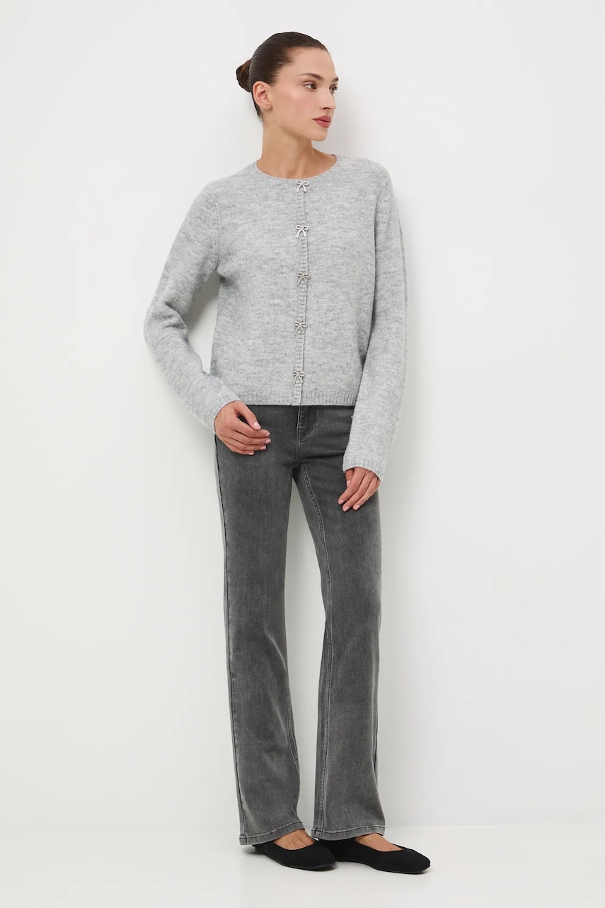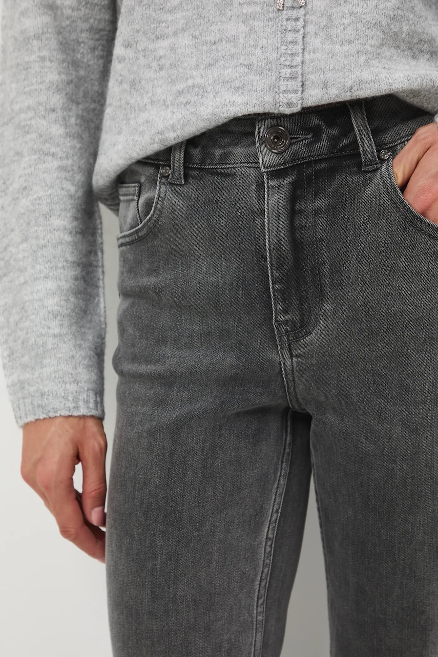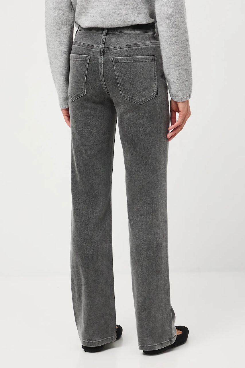 - Fason straight - jeansy o klasycznym kroju z prostą nogawką na całej długości zapewniają swobodę ruchów i komfort w użytkowaniu. Uniwersalny krój jeansów sprawia, że są odpowiednie dla każdej figury. - Model z podwyższoną talią i zapięciem na guzik i suwak. - Wsuwane kieszenie. - Ozdobnie sprany denim. - Szerokość w pasie: 35 cm. - Szerokość w biodrach: 44 cm. - Wysokość stanu: 25 cm. - Szerokość nogawki na dole: 22 cm. - Długość wewnętrzna nogawki: 81 cm. - Wymiary podane dla rozmiaru: 36.