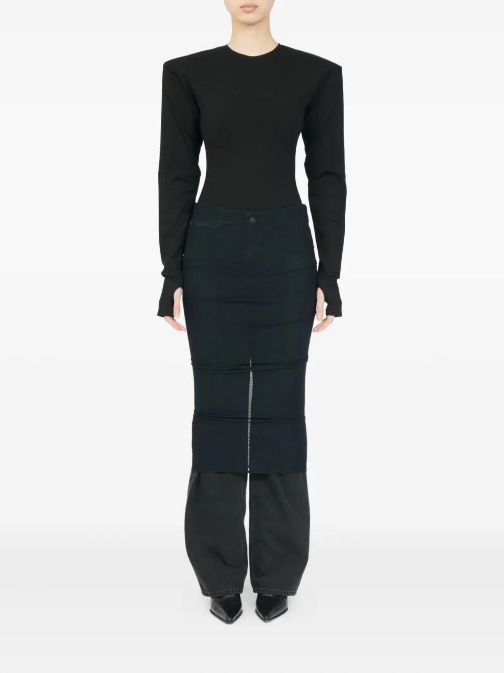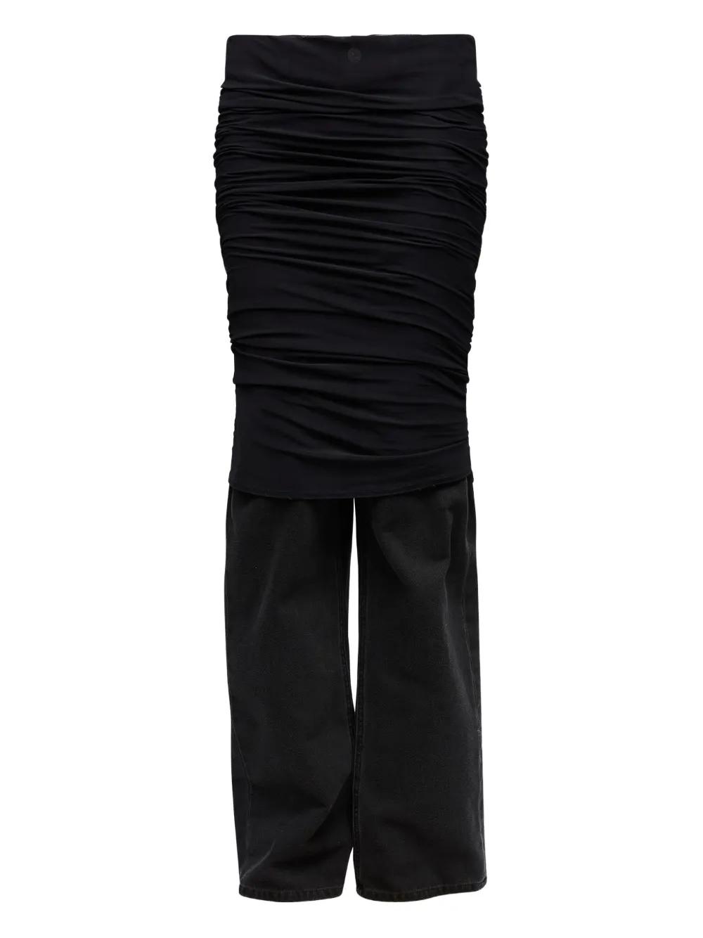 indigo blue side button and zip fastening two front patch pockets rear patch pocket belt loops