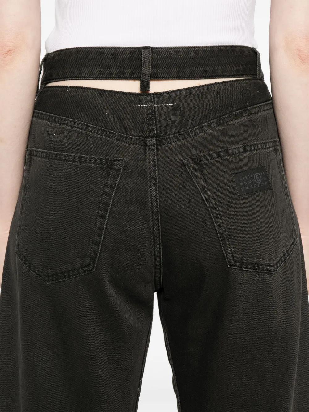 black front button and zip fastening belt loops classic five pockets cut-out detailing