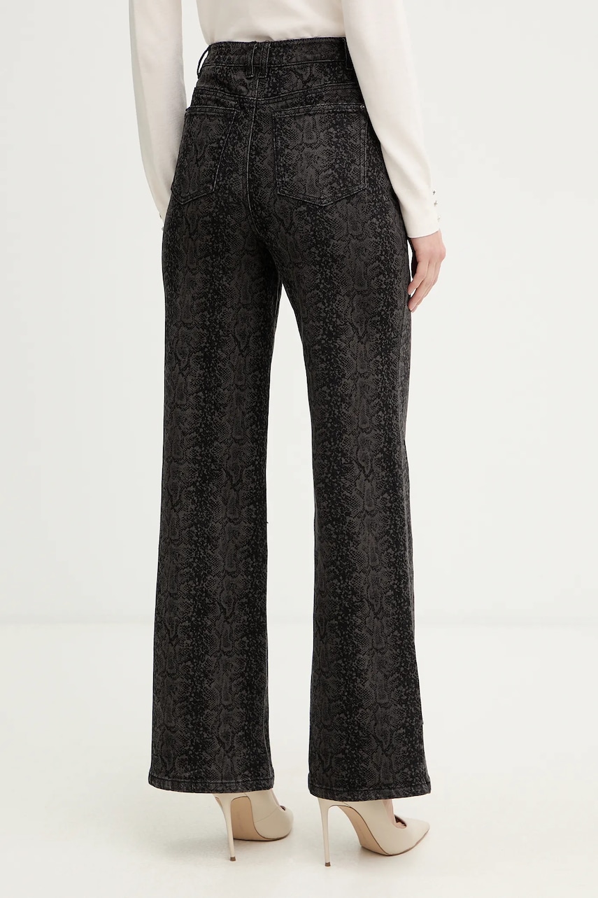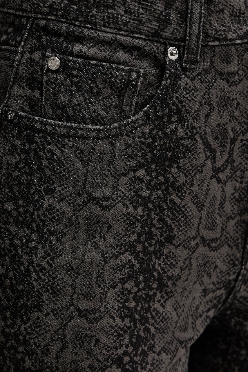 - Model wykonany częściowo z bawełny z recyklingu. - Model z podwyższoną talią i zapięciem na guzik i suwak. - Szeroka nogawka. - Z przodu trzy wsuwane kieszenie. - Dwie wsuwane kieszenie na pośladkach. - Szerokość w pasie: 34 cm. - Szerokość w biodrach: 42 cm. - Wysokość stanu: 31 cm. - Szerokość nogawki: 28,5 cm. - Szerokość nogawki na dole: 27 cm. - Długość wewnętrzna nogawki: 80 cm. - Wymiary podane dla rozmiaru: 36.