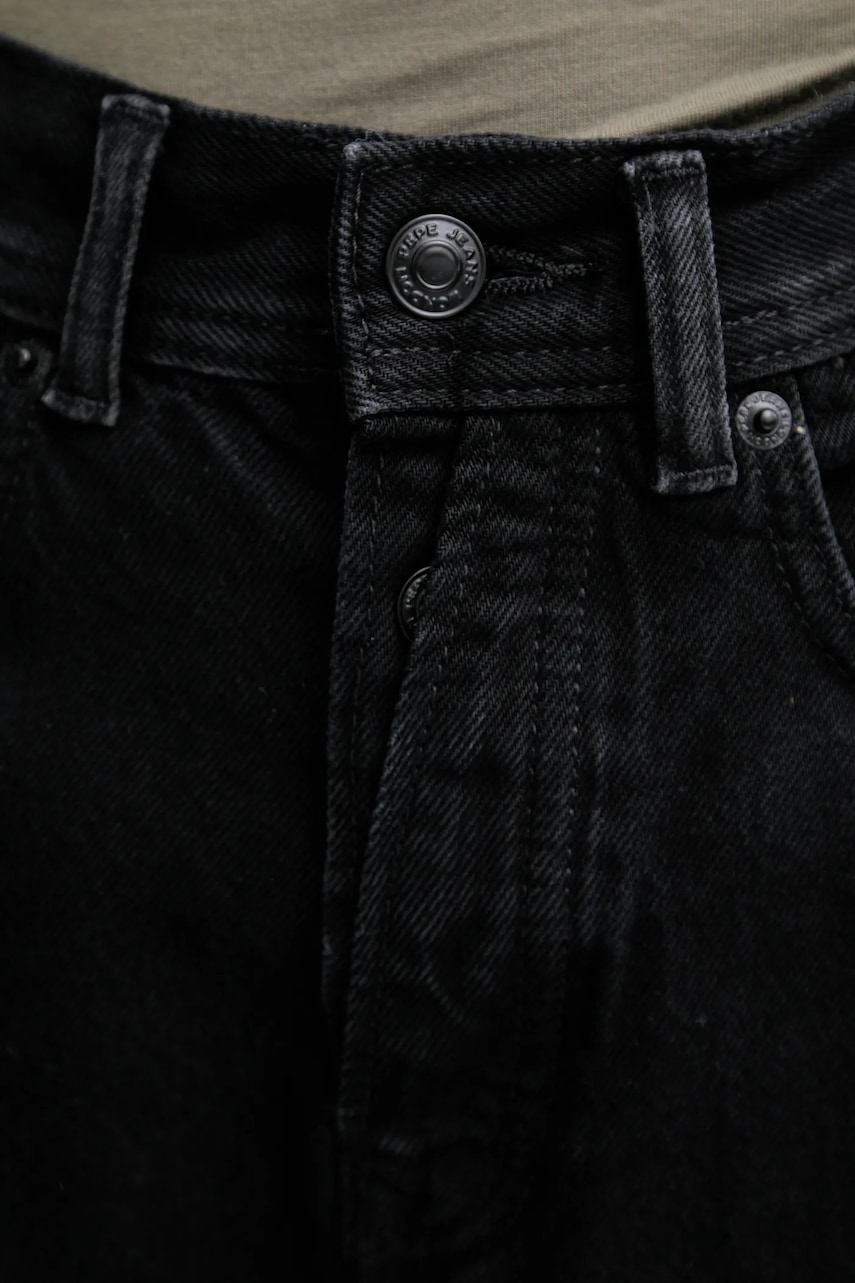 - Model z linii Pepe Future, w skład której wchodzą wyroby powstające w zrównoważonym procesie produkcyjnym. - Model z podwyższoną talią i zapięciem na guziki. - Z przodu trzy wsuwane kieszenie. - Dwie wsuwane kieszenie na pośladkach. - Fason ze zwężanymi nogawkami, które nie blokują ruchów. - Szerokość w pasie: 32 cm. - Szerokość w biodrach: 45 cm. - Wysokość stanu: 33 cm. - Szerokość nogawki na dole: 20 cm. - Szerokość nogawki: 30 cm. - Długość nogawki: 96 cm. - Wymiary podane dla rozmiaru: 27/28.