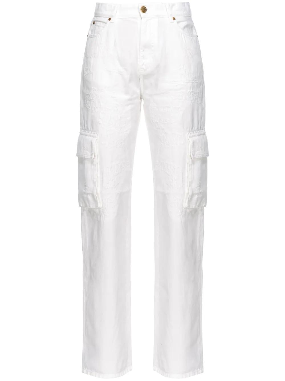 PINKO high-rise straight-leg cargo jeans - White