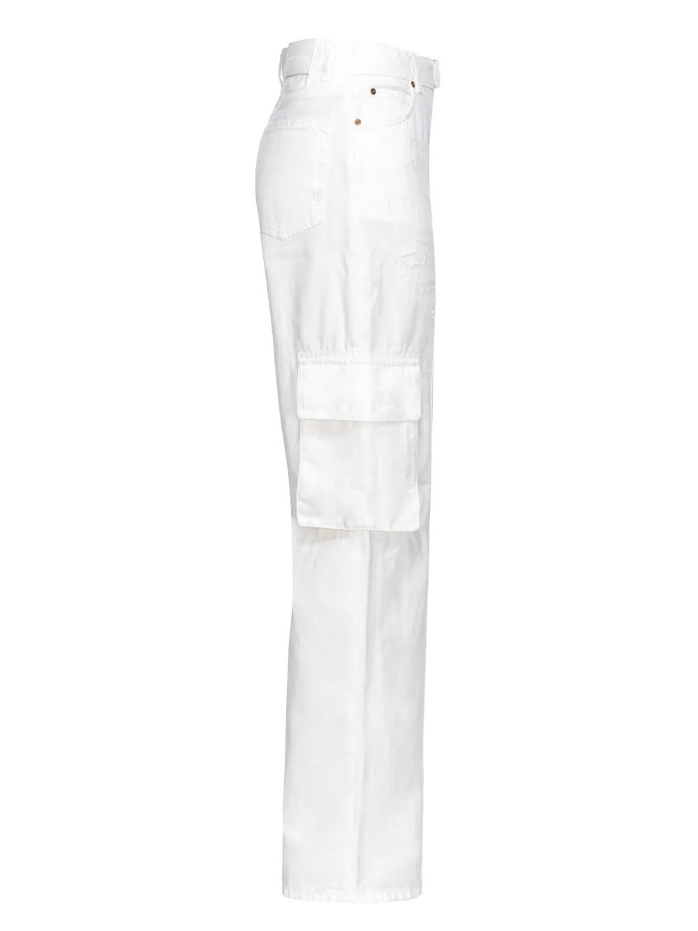 white cotton tonal stitching ripped detailing belt loops concealed fly and button fastening high-waisted straight leg classic five pockets two side cargo pockets straight hem