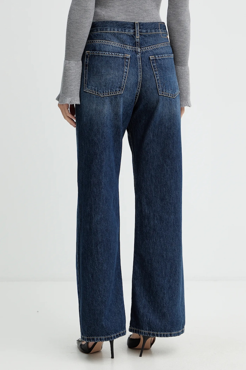 Uwaga: oryginalna rozmiarówka produktów tej marki jest rozmiarówką włoską. Informujemy, że rozmiary na metkach mogą różnić się od zamawianych ze względu na zastosowany przelicznik. - Fason wide leg - jeansy lekko dopasowane w okolicy bioder z charakterystyczną szeroką nogawką, która stopniowo poszerza się od talii, aż do samego dołu. Krój akcentuje wcięcie w talii, a luźny dół nie krępuje ruchów. - Model z podwyższoną talią i zapięciem na guzik i suwak. - Z przodu trzy wsuwane kieszenie. - Dwie wsuwane kieszenie na pośladkach. - Szerokość w pasie: 40,5 cm. - Szerokość w biodrach: 53,5 cm. - Wysokość stanu: 31,5 cm. - Szerokość nogawki na dole: 28,5 cm. - Szerokość nogawki: 29,5 cm. - Długość zewnętrzna nogawki: 109 cm. - Wymiary podane dla rozmiaru: 27.