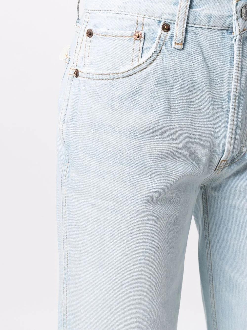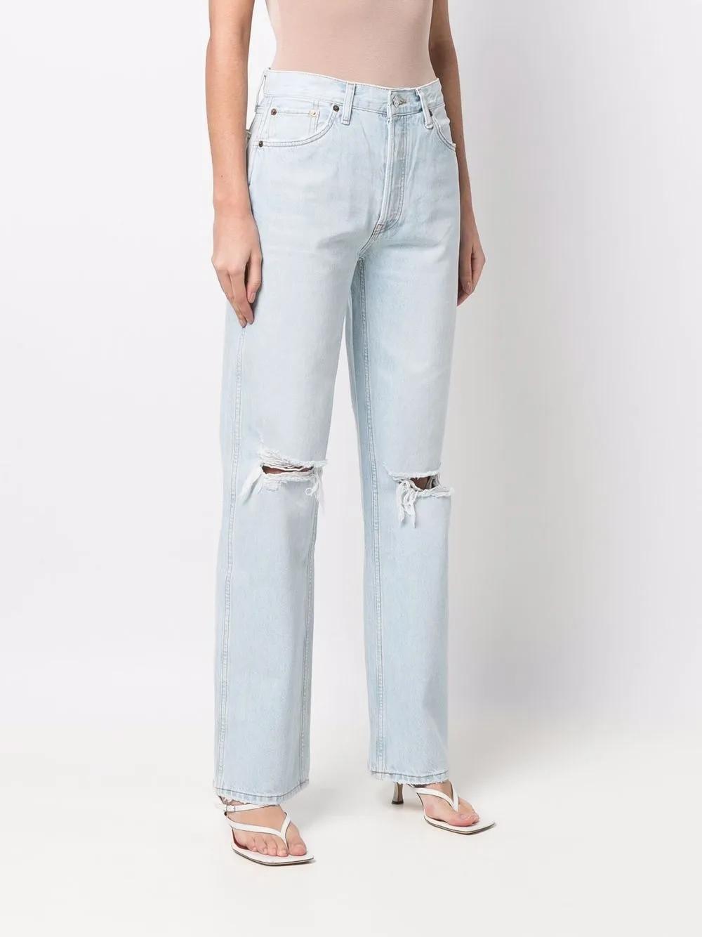 blue cotton distressed finish wide leg front button and zip fastening mid-rise belt loops