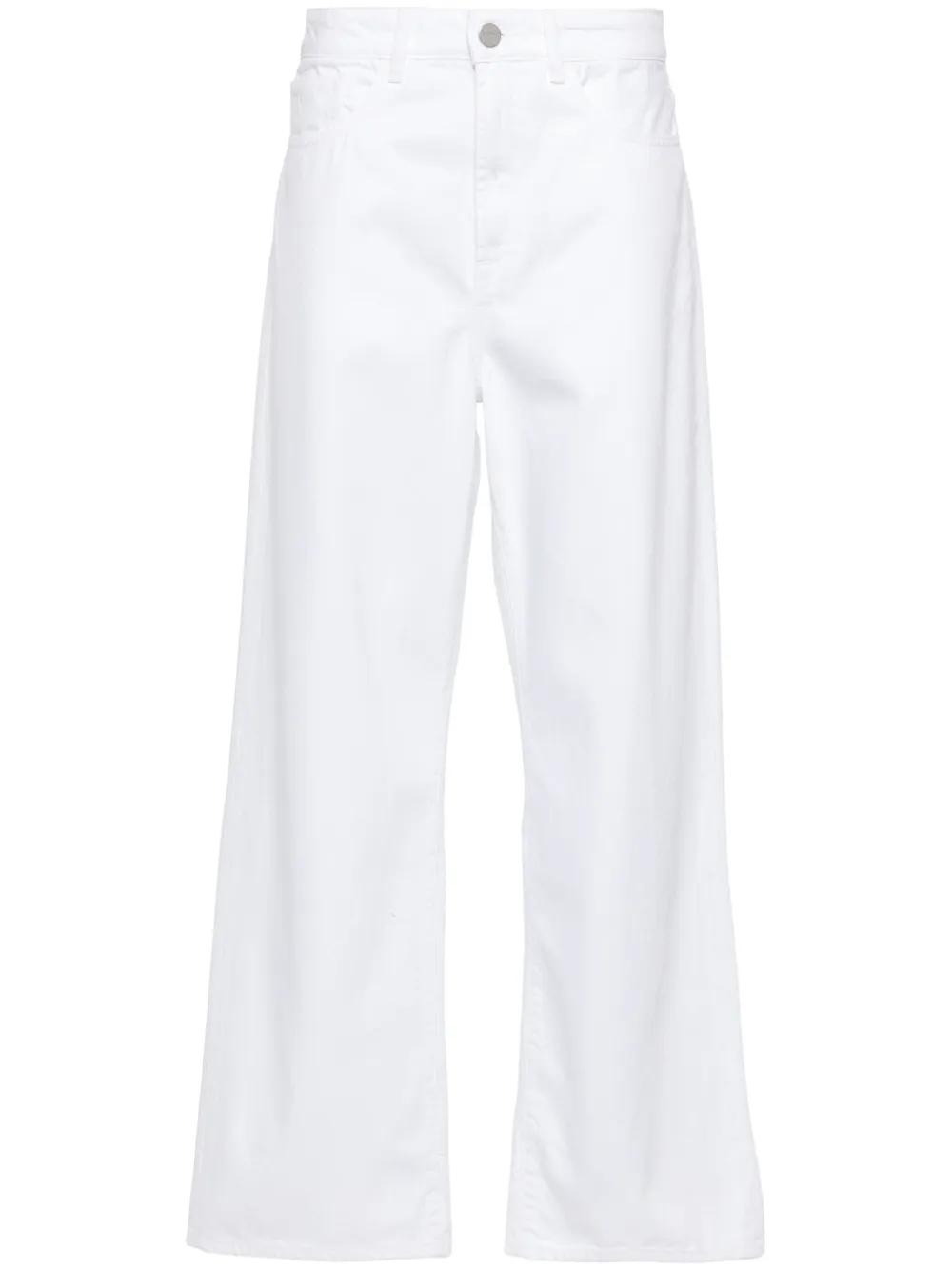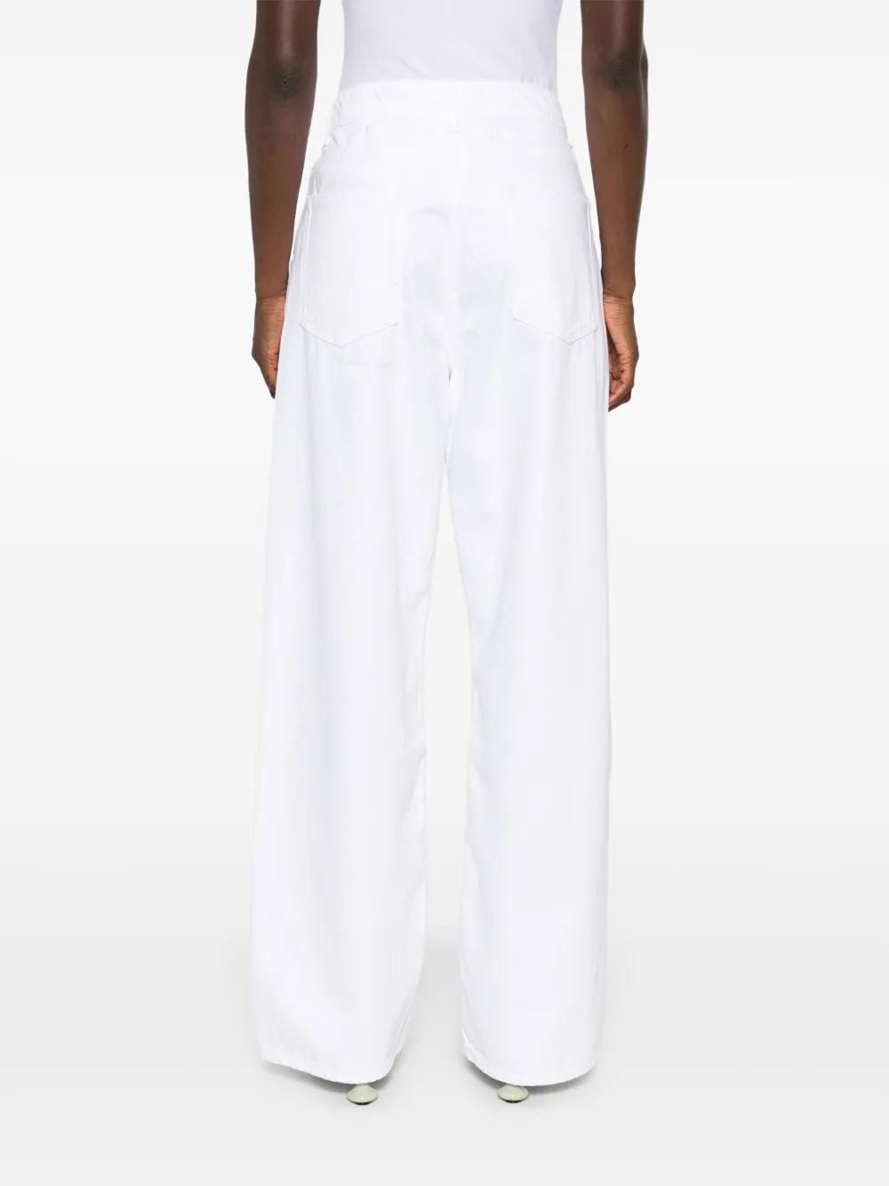 white cotton denim low-rise belt loops classic five pockets full-length wide leg concealed fly and button fastening