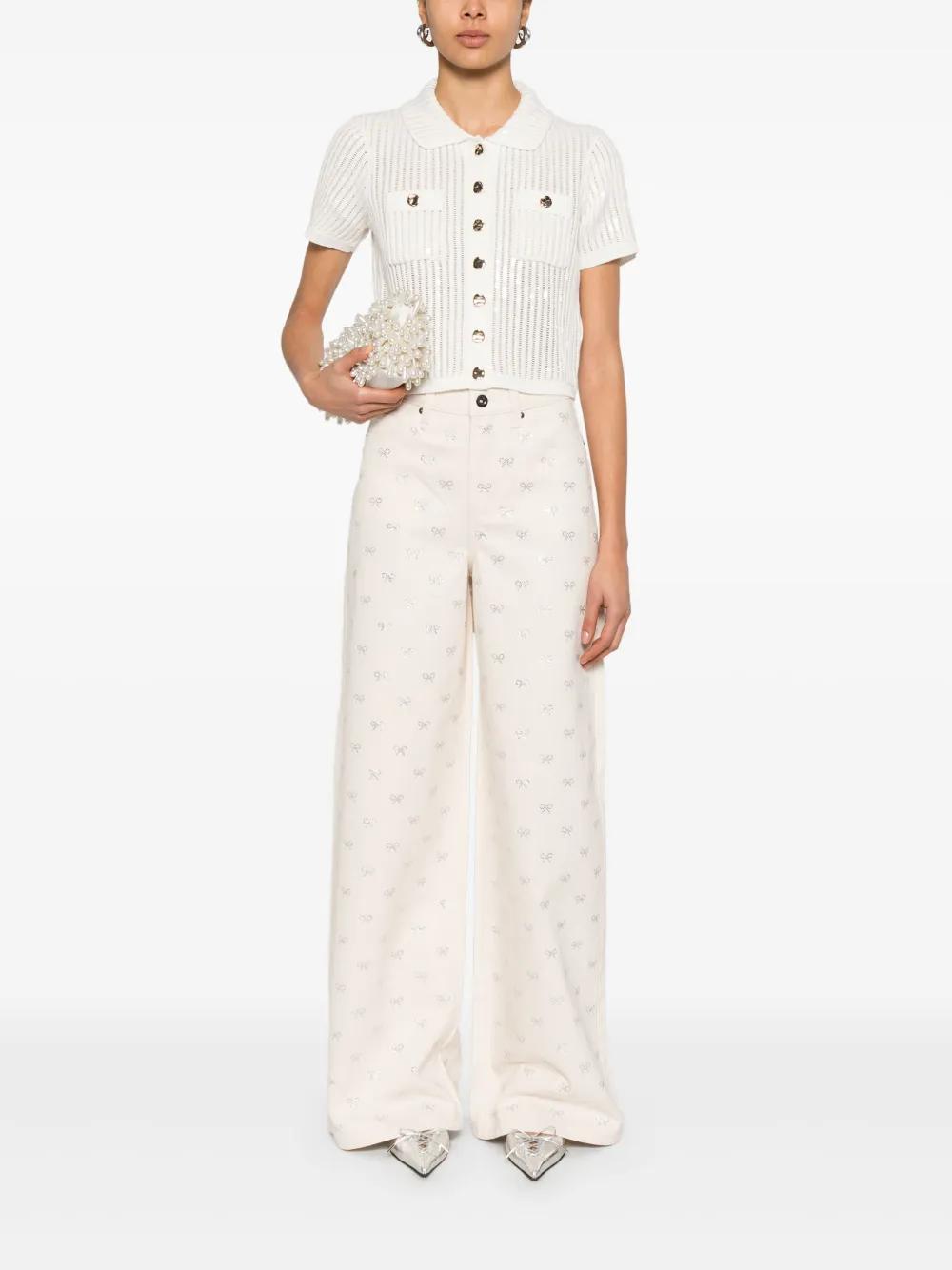 light beige concealed fly and button fastening belt loops classic five pockets tonal stitching