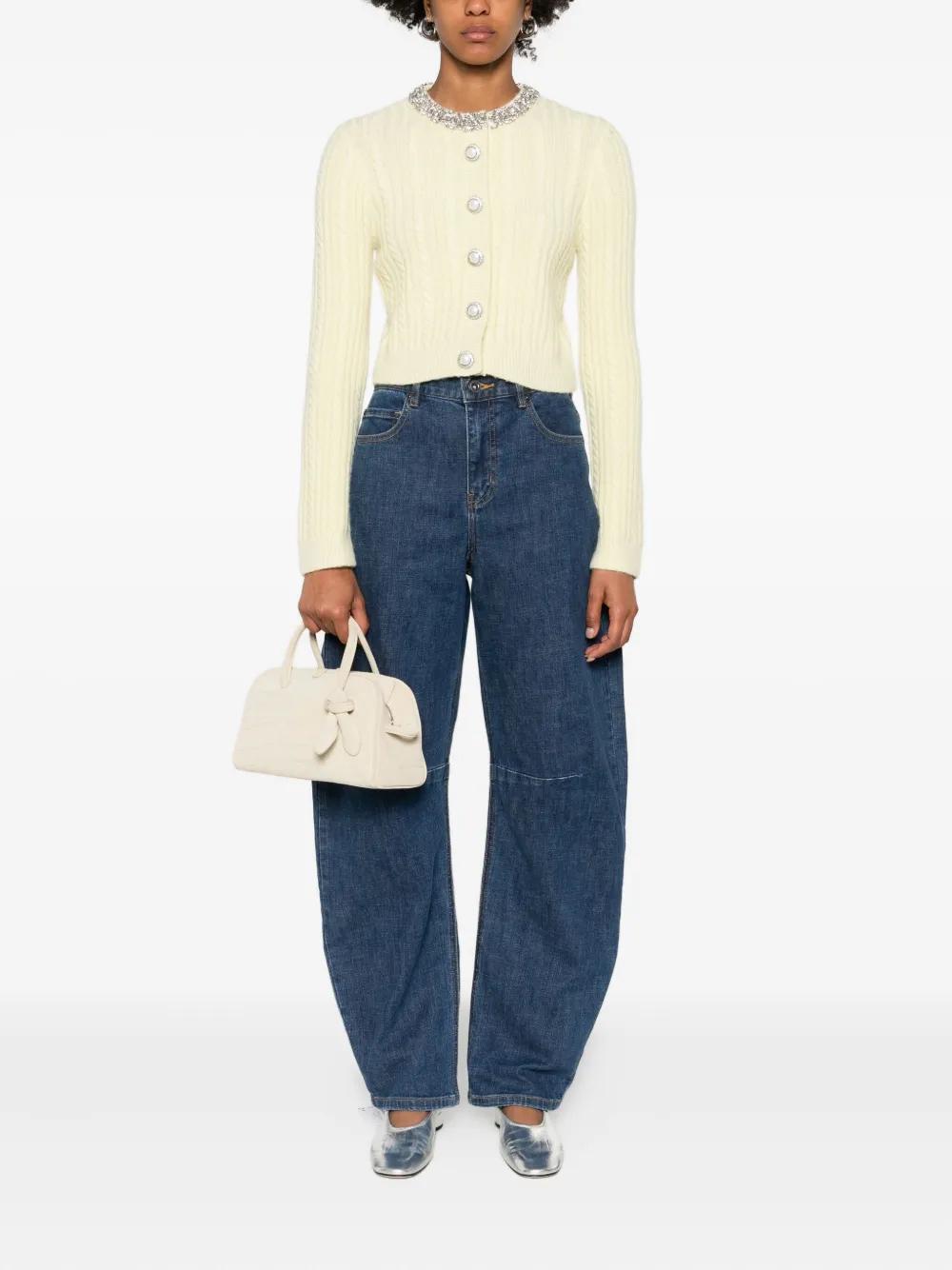 indigo blue cotton blend washed denim whiskering effect rhinestone embellishment appliqué logo belt loops classic five pockets concealed fly and button fastening cropped leg super-skinny cut