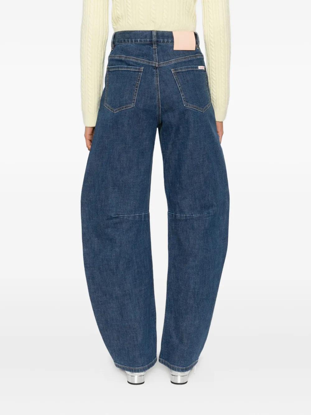 indigo blue side zip fastening two side slash pockets contrast stitching high-waisted
