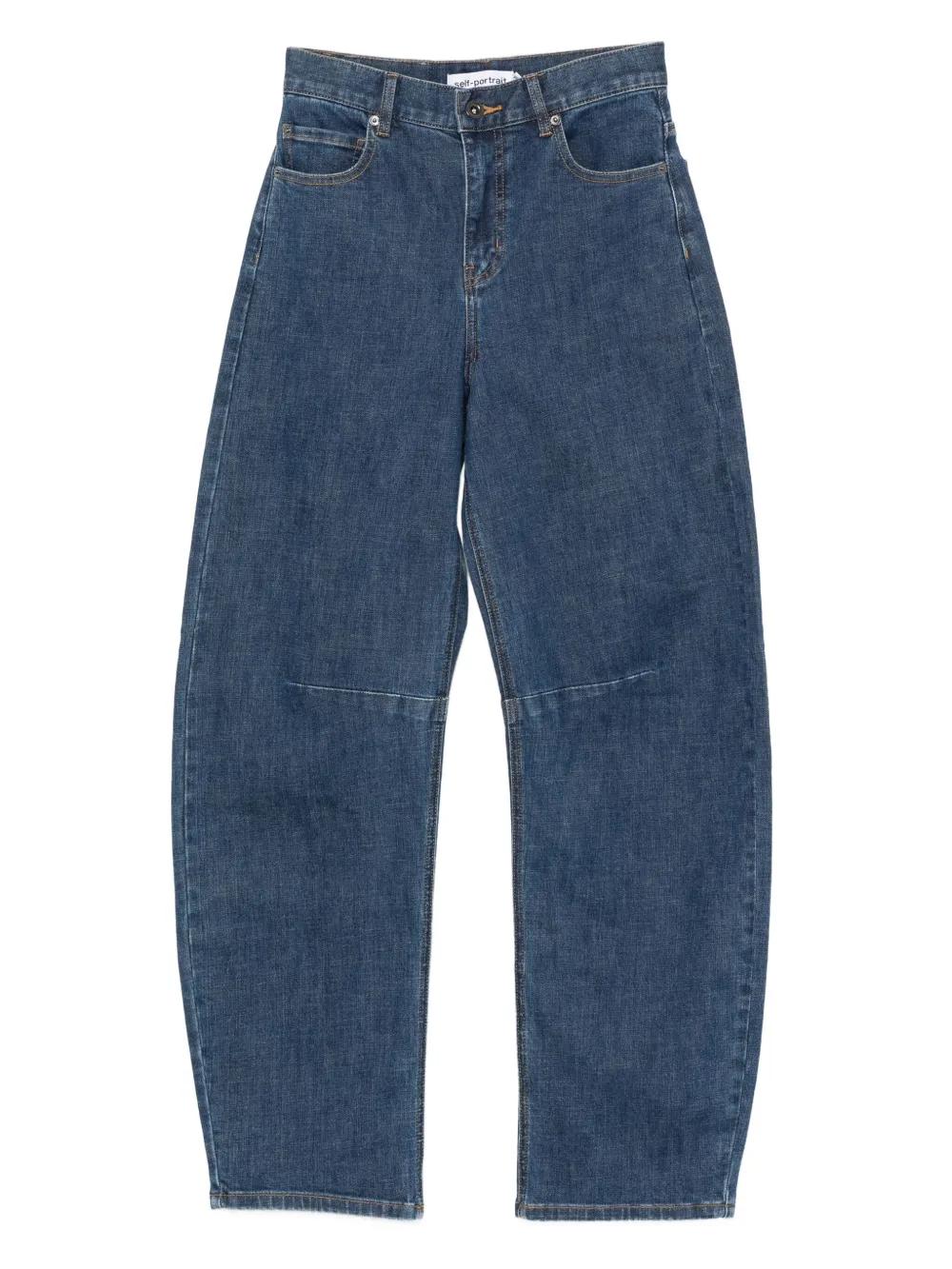 blue cotton ripped detailing silver-tone logo plaque high-waisted front button fastening classic five pockets slim cut