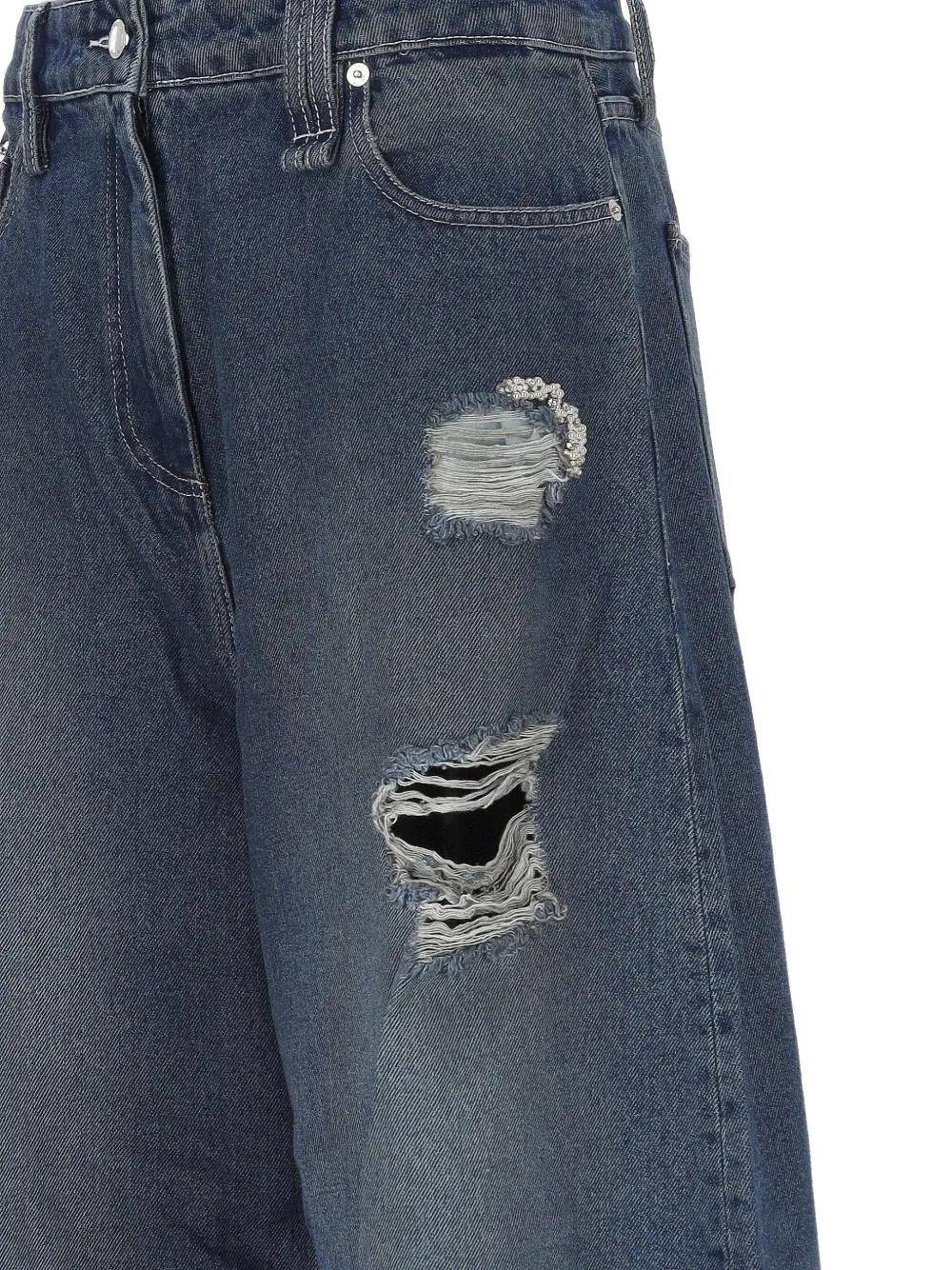 blue distressed effect embellishment detail five pockets belt loops rear logo patch