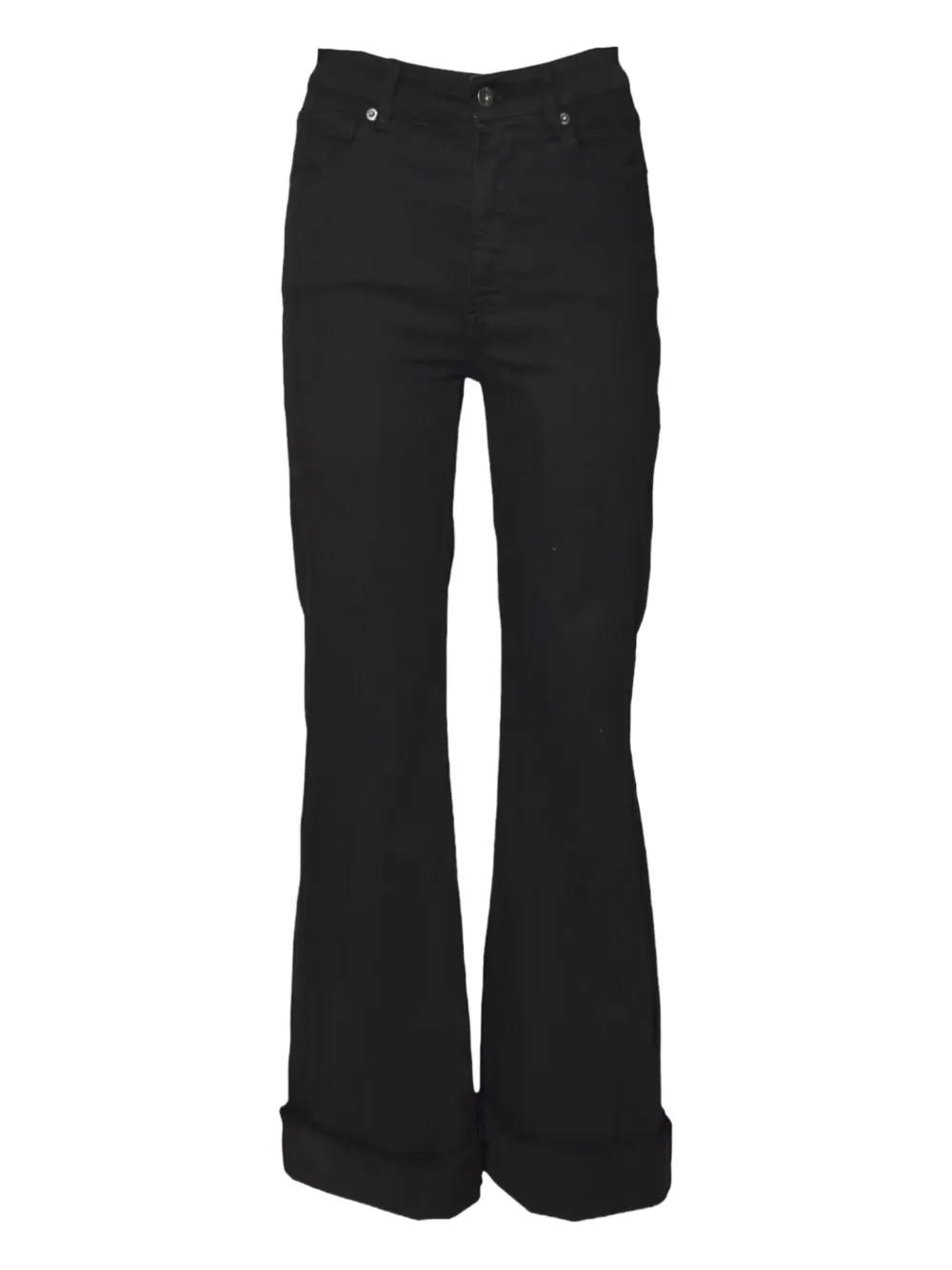 black flared leg button and zip fastening rolled cuffs classic five pockets