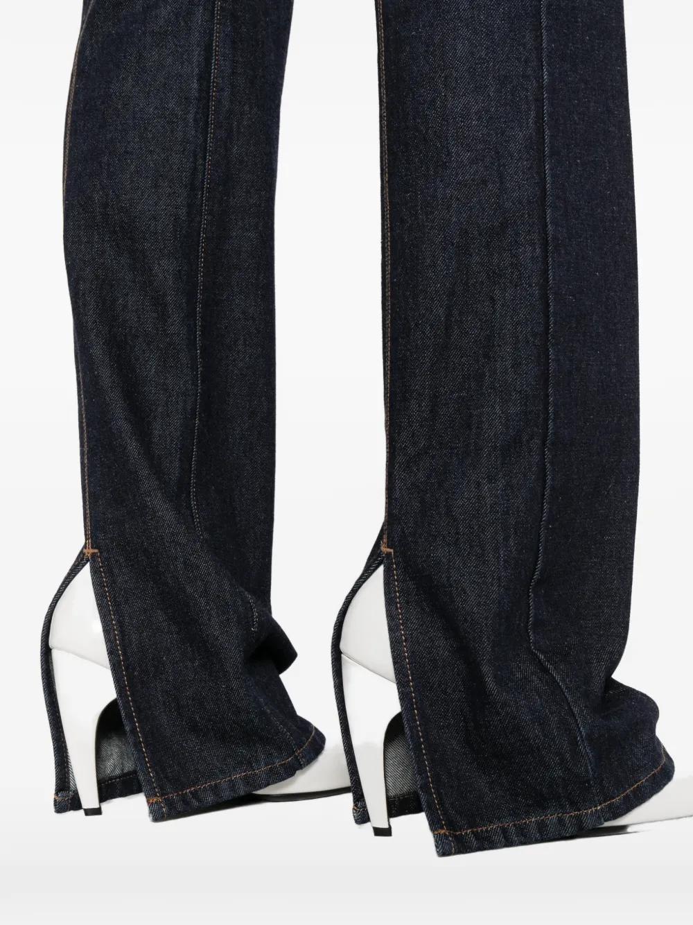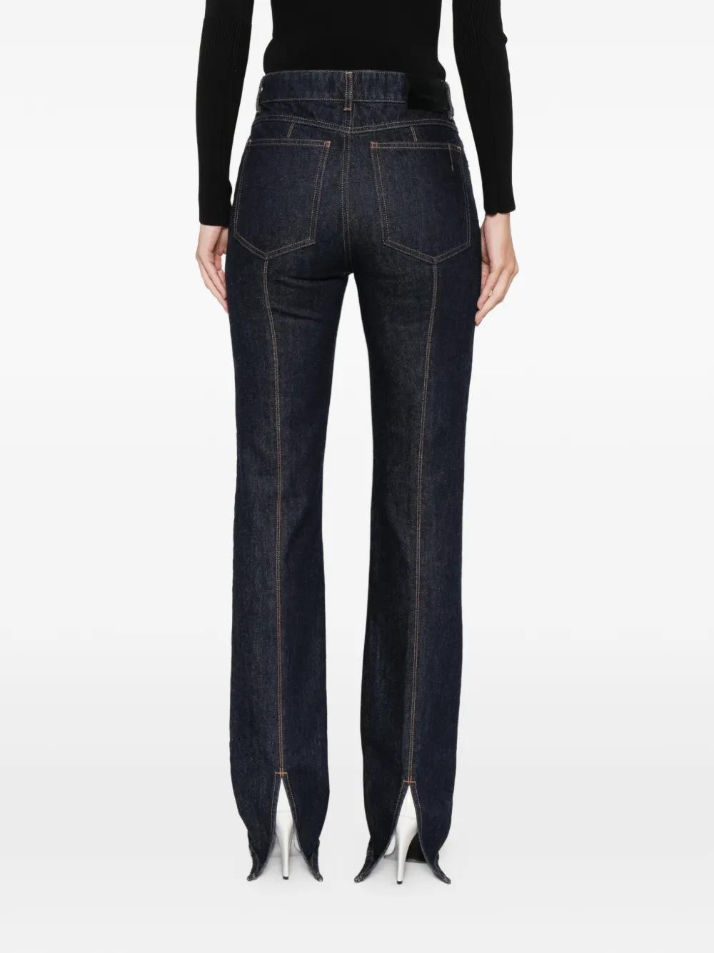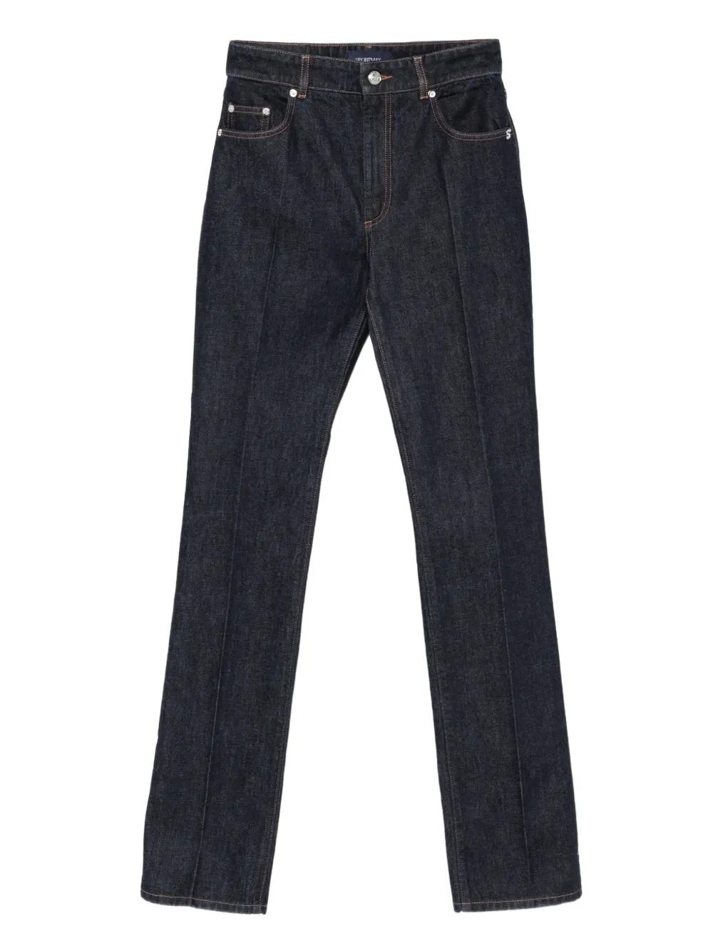 midnight blue belt loops classic five pockets rear logo patch top button closure