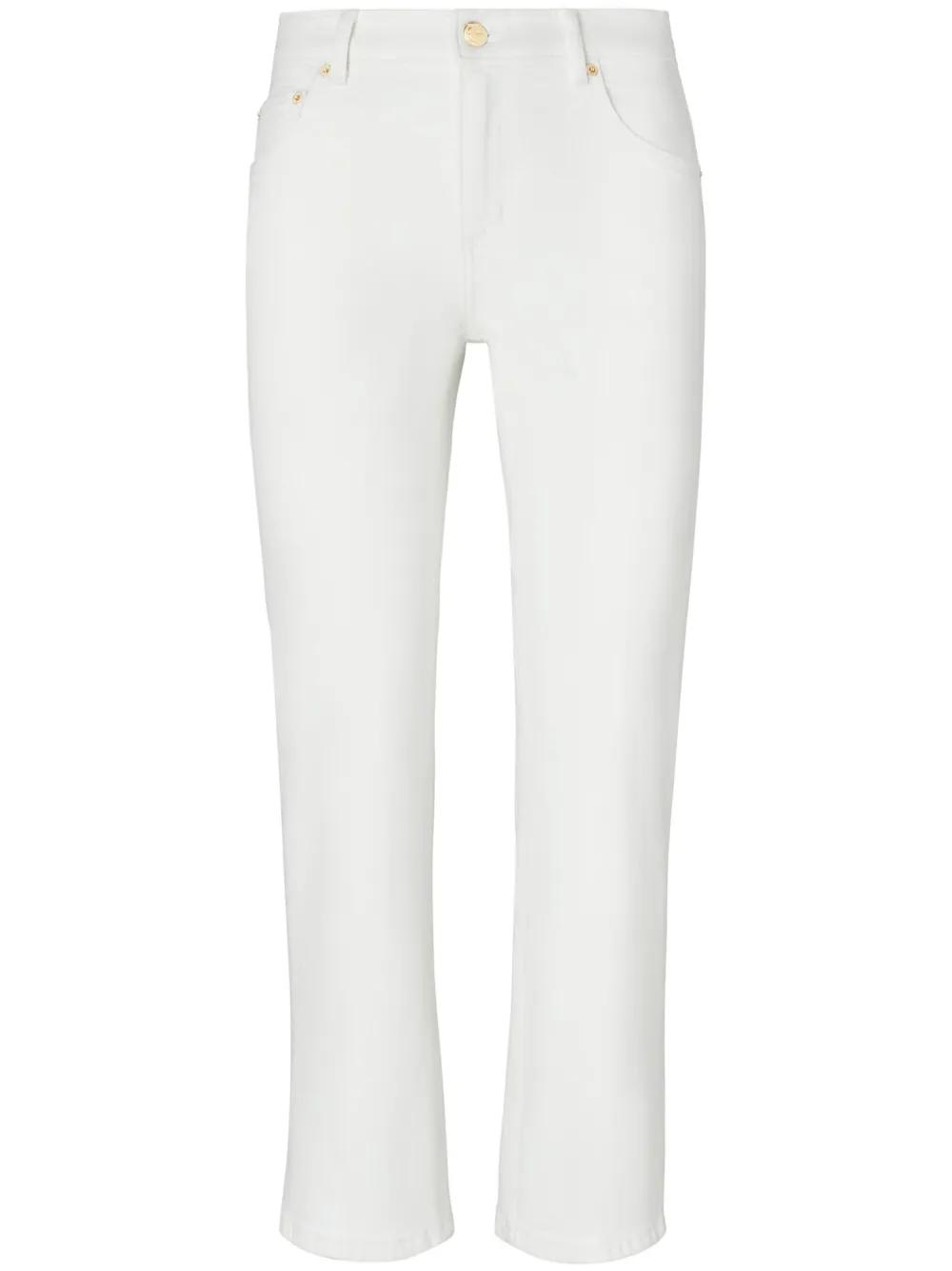 white cotton blend stretch-design denim mid-rise belt loops front button and zip fastening classic five pockets flared hem