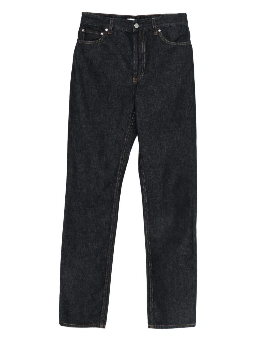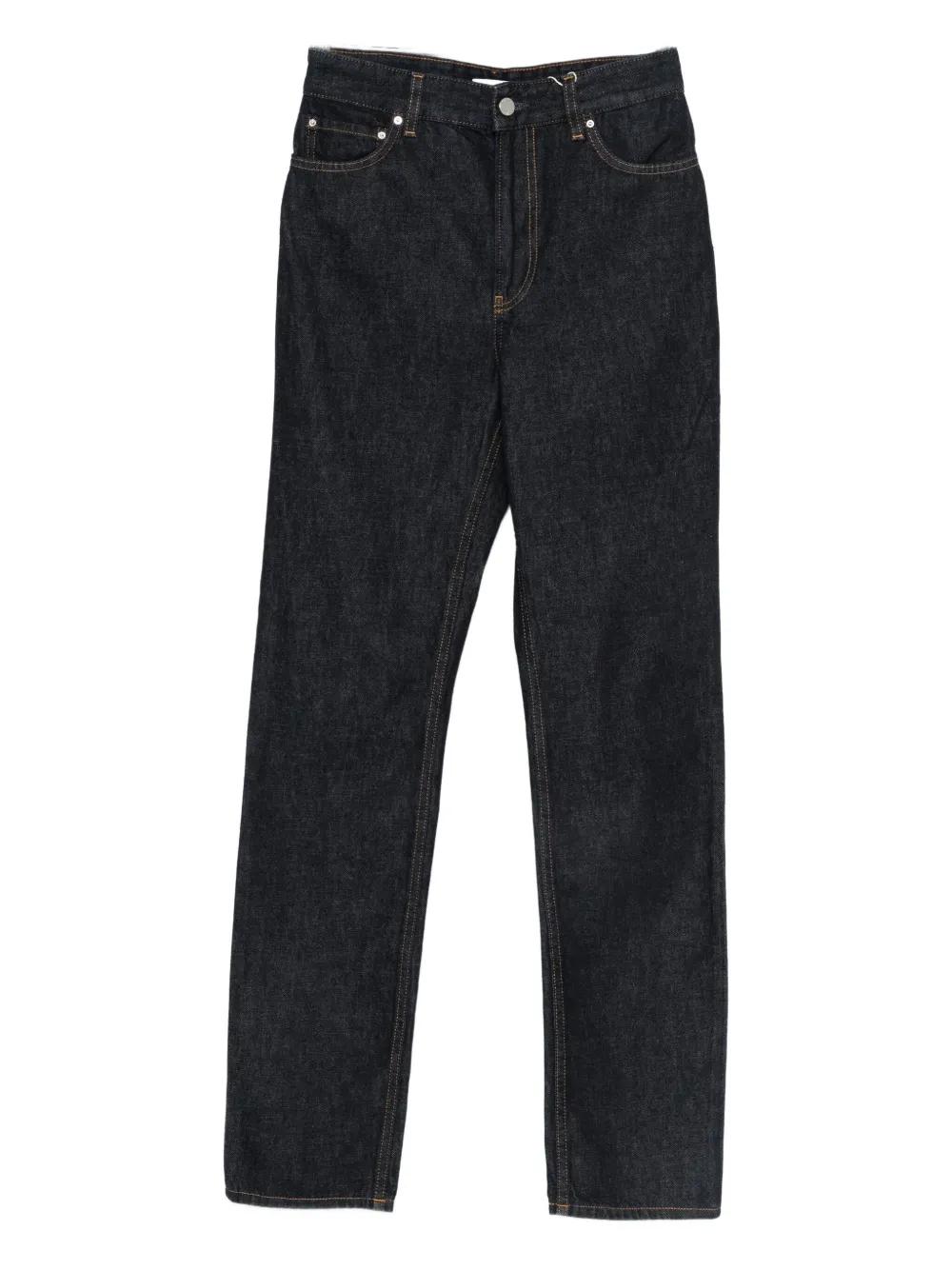 blue topstitching button and zip fastening belt loops five pockets silver-tone hardware
