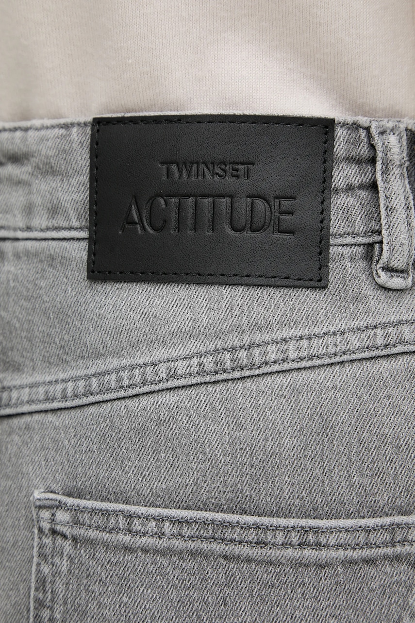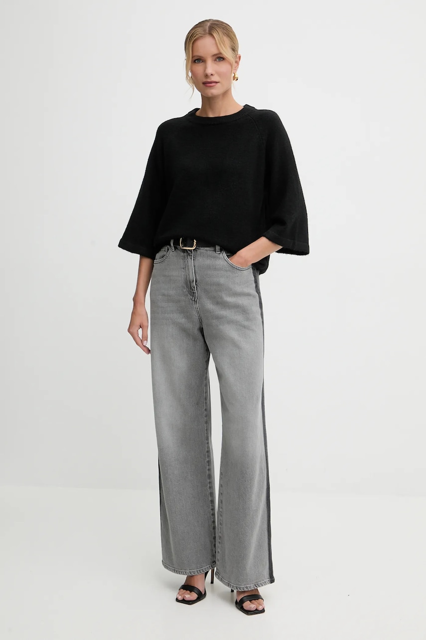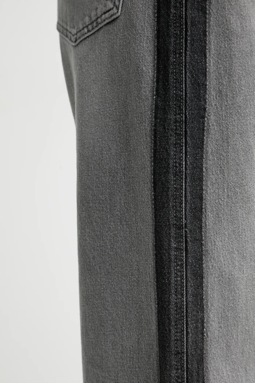 - Prosta nogawka na całej długości. - Model z podwyższoną talią i zapięciem na guzik i suwak. - Posiadają klasyczne pięć kieszeni. - Szerokość w pasie: 39 cm. - Szerokość w biodrach: 53 cm. - Wysokość stanu: 31 cm. - Szerokość nogawki na dole: 28 cm. - Szerokość nogawki: 30 cm. - Długość wewnętrzna nogawki: 80 cm. - Wymiary podane dla rozmiaru: 27.
