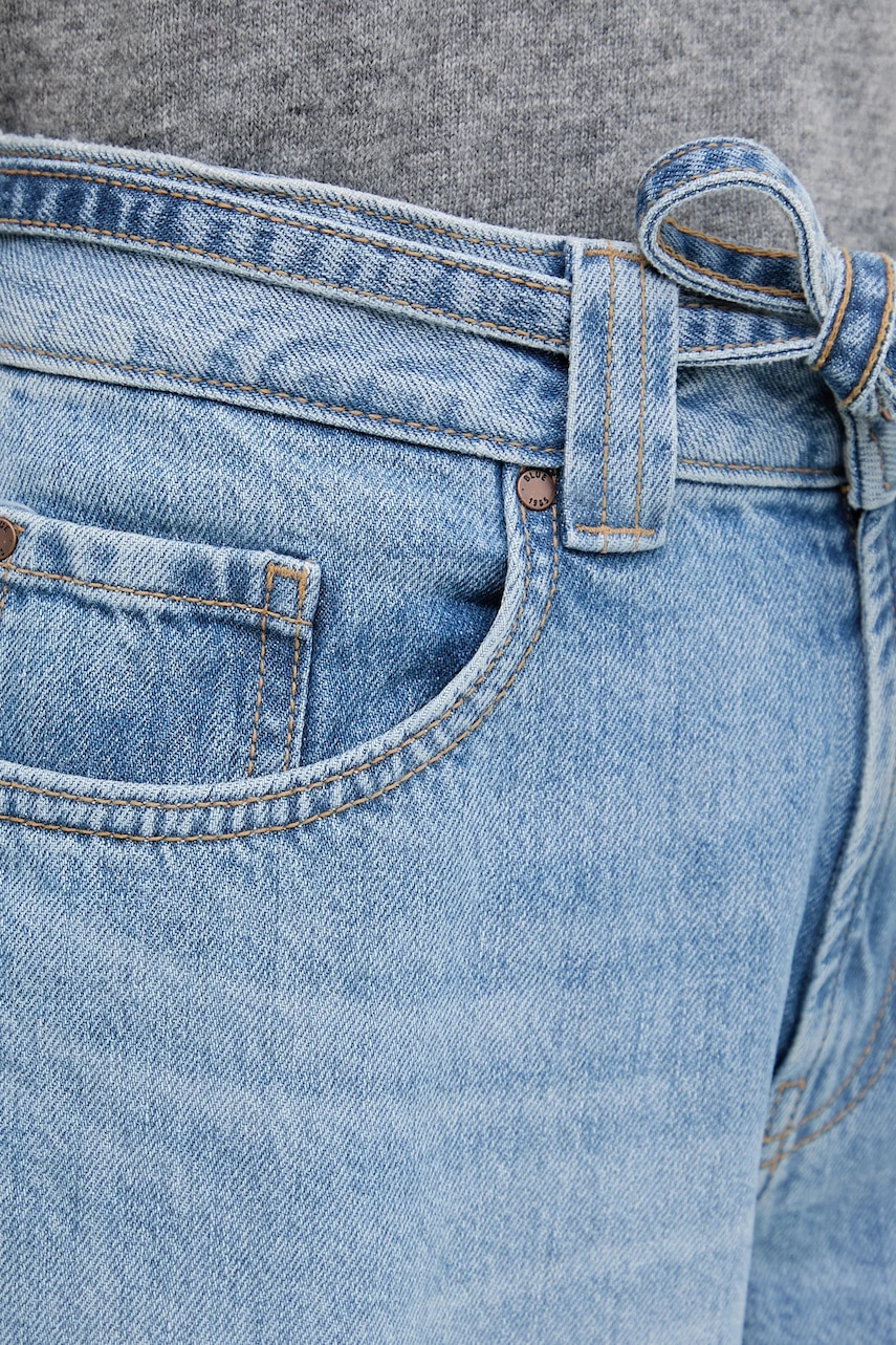 - Jeansy luźne w okolicy bioder i ud. - Prosta nogawka na całej długości. - Model z podwyższoną talią i zapięciem na guzik i suwak. - Z przodu trzy wsuwane kieszenie. - Dwie wsuwane kieszenie na pośladkach. - Dołączony tekstylny pasek. - Szerokość w pasie: 38 cm. - Szerokość w biodrach: 52,5 cm. - Wysokość stanu: 29 cm. - Szerokość nogawki na dole: 24 cm. - Szerokość nogawki: 30,5 cm. - Długość zewnętrzna nogawki: 103,5 cm. - Wymiary podane dla rozmiaru: 28.