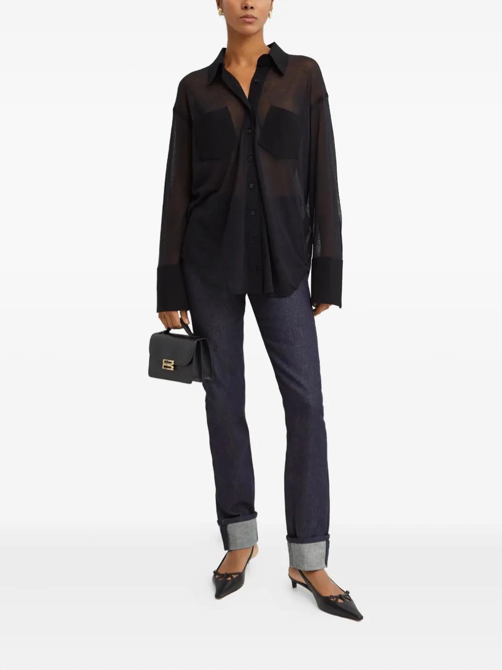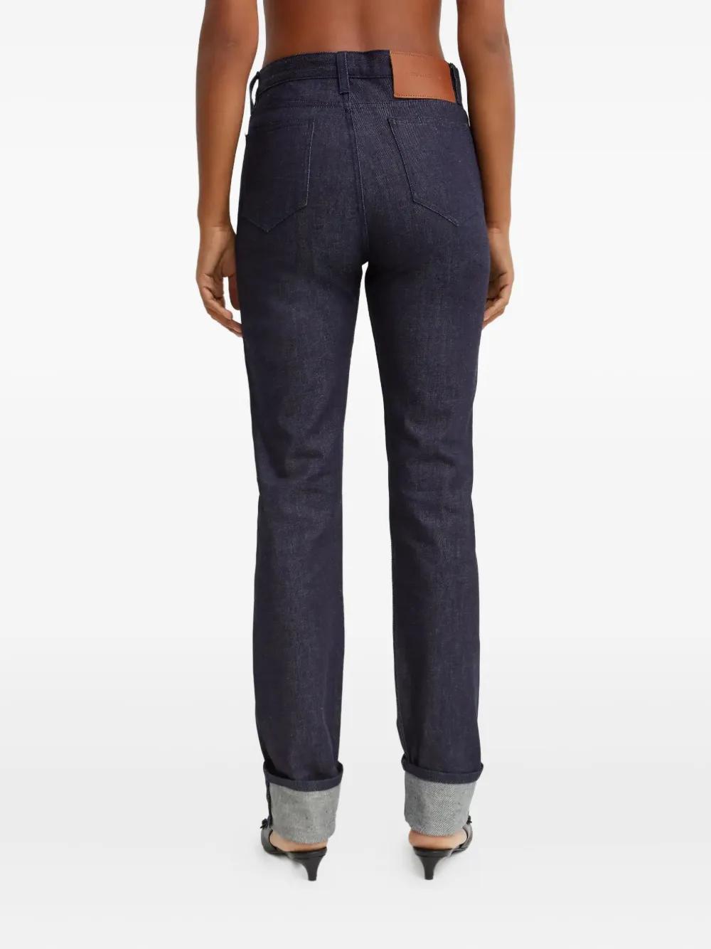 dark indigo five pockets button fastening leather logo-patch straight leg turn-up hem