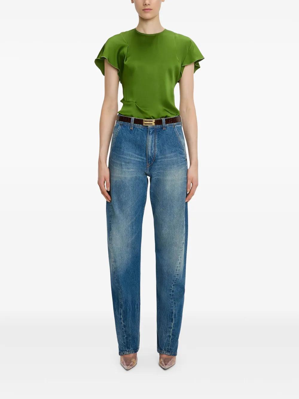 blue denim faded finish high-rise waist five-pocket design belt loops button and concealed zip fastening