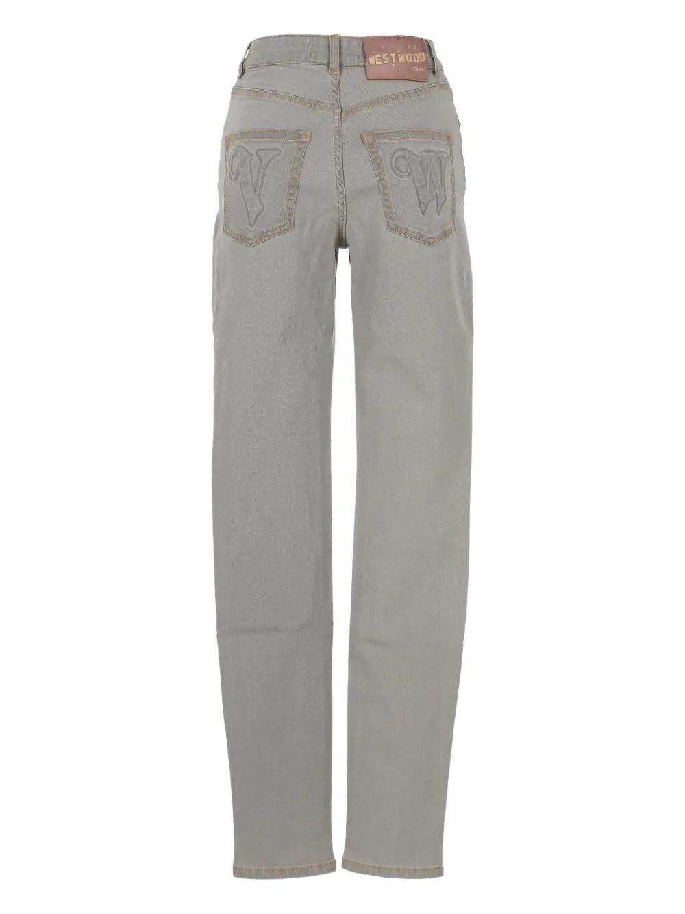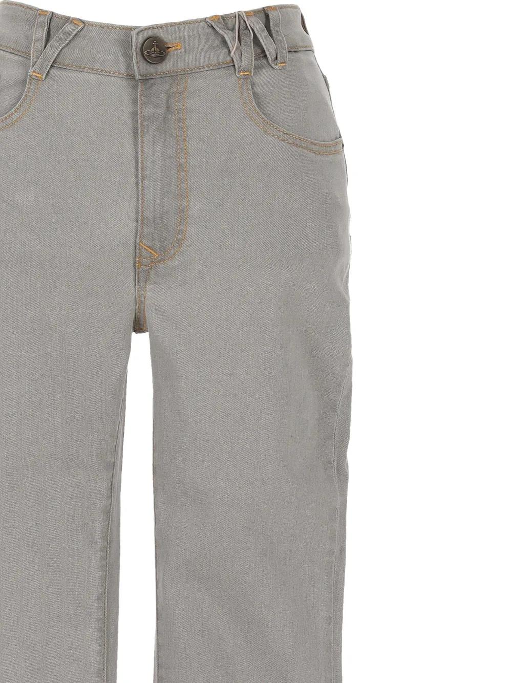 grey logo detail button fastening topstitch detail five pockets belt loops