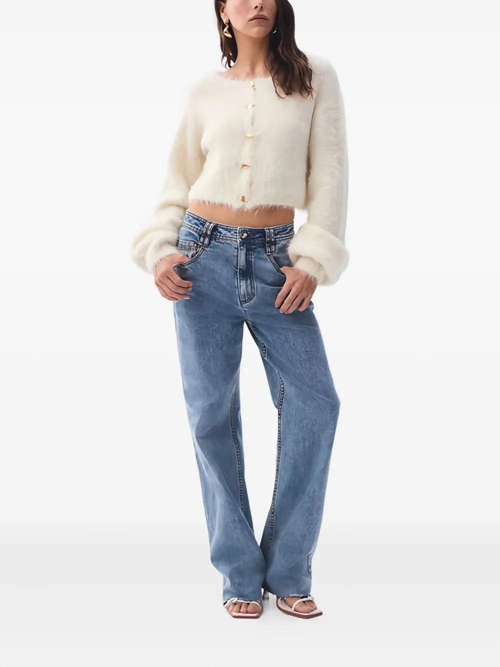 ivory button fastening round neck long sleeves cropped style