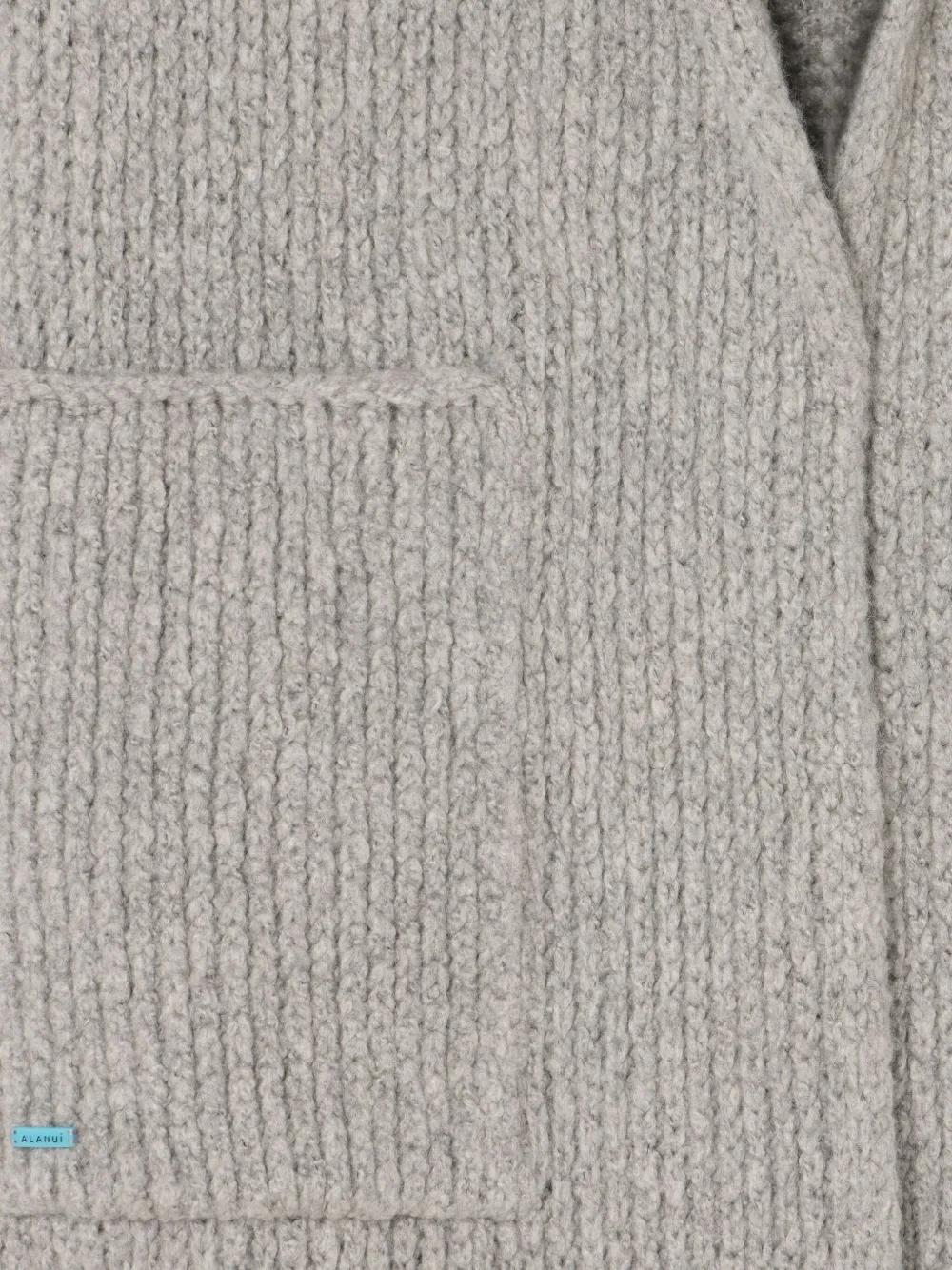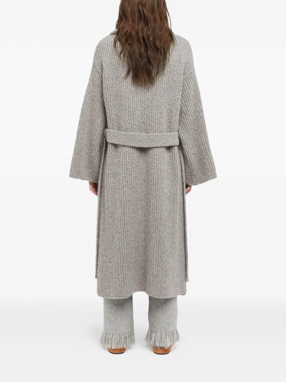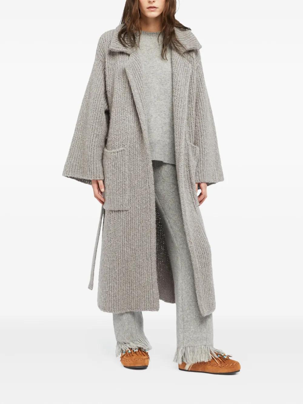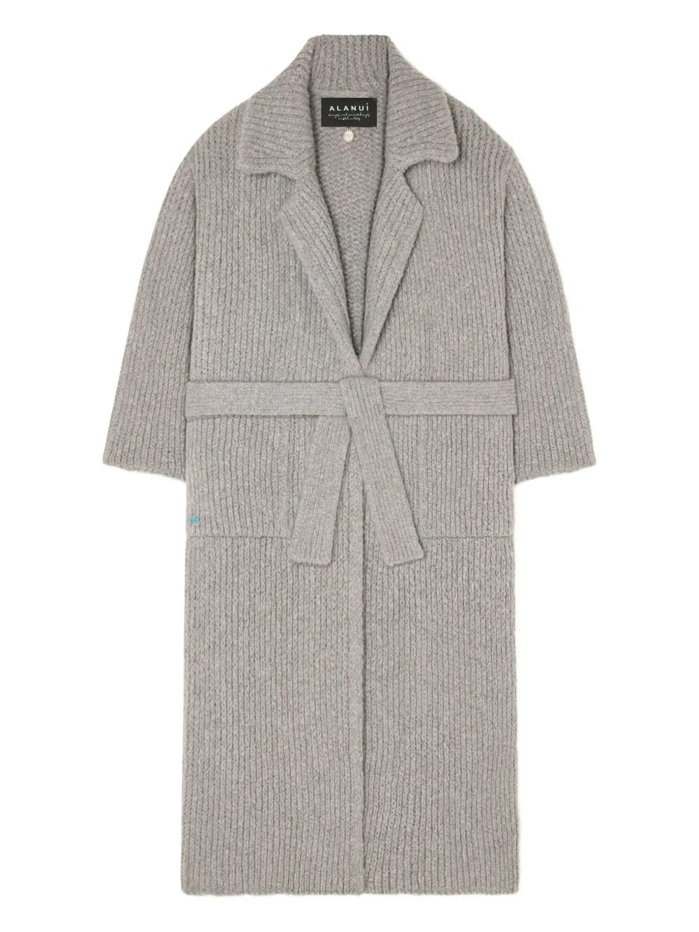 coco grey ribbed knit belted waist patch pockets wide sleeves notched lapels
