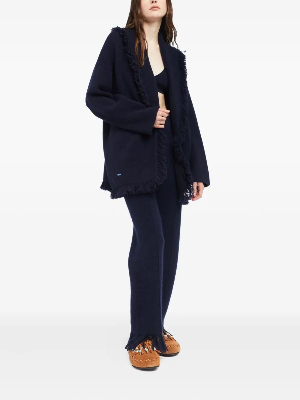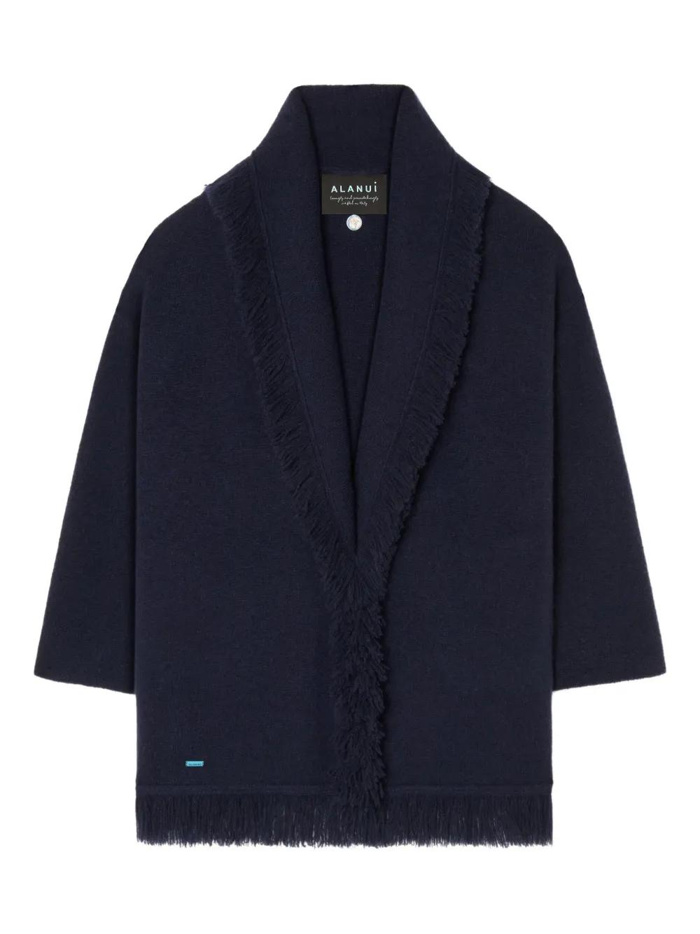black alpaca wool-blend knitted construction band collar front button fastening long sleeves