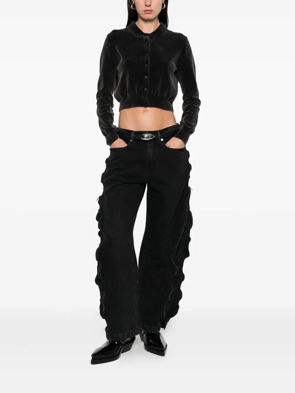 black collared neck button fastening cropped length long sleeves ribbed hem