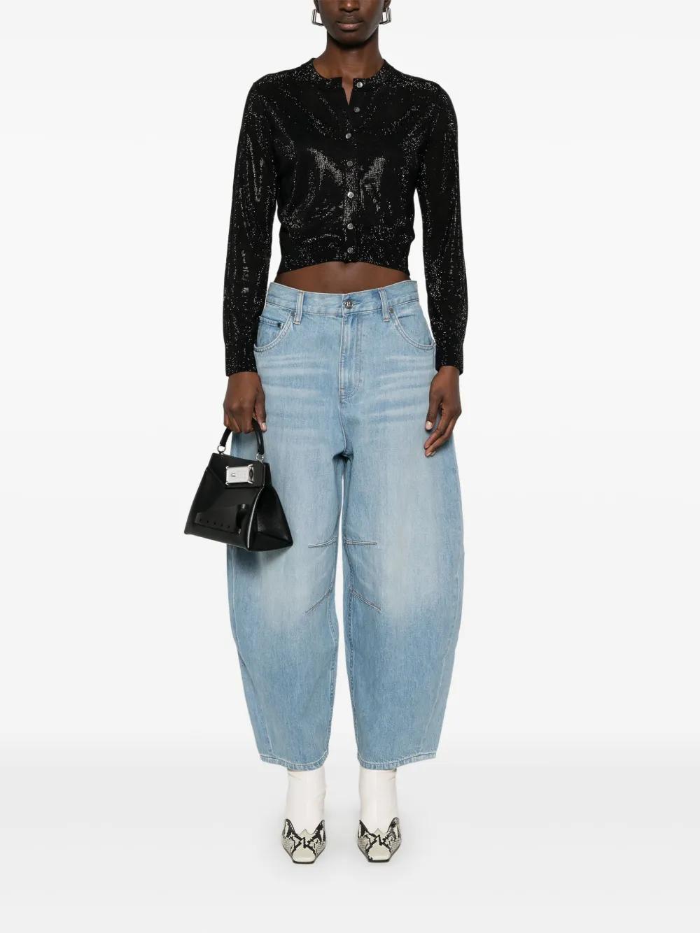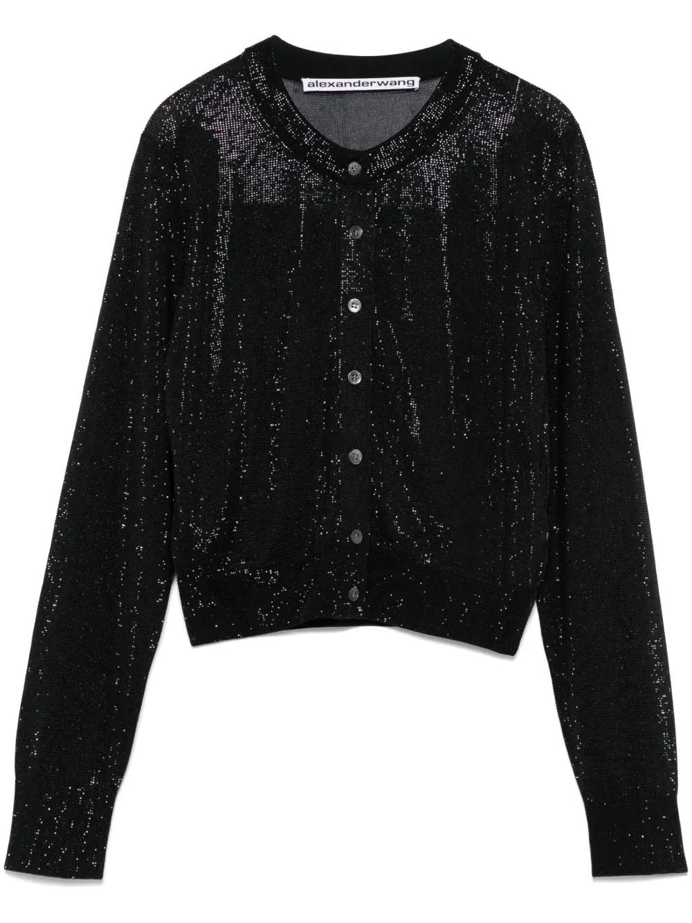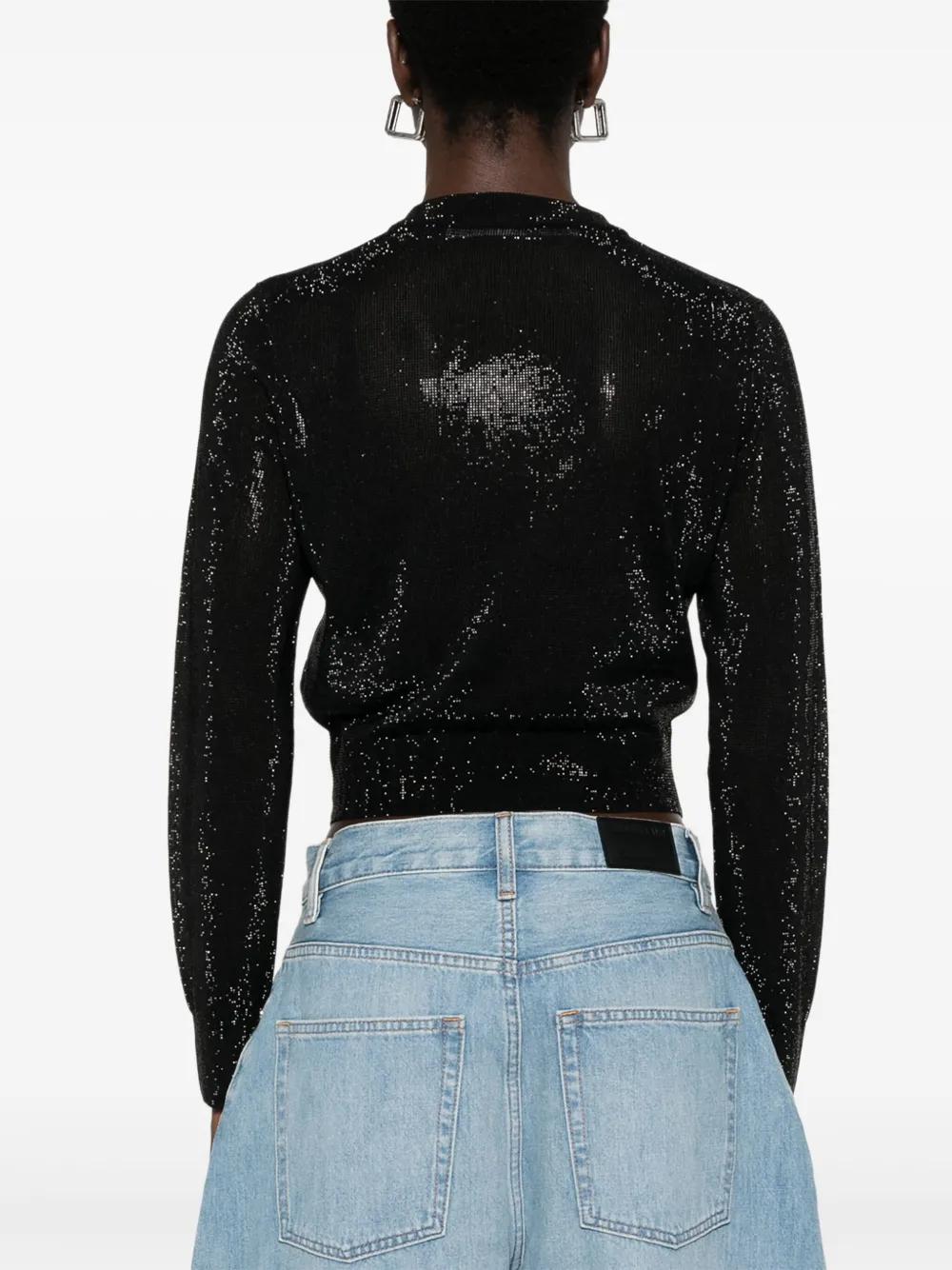 black front button fastening ribbed cuffs and hem crew neck rhinestone embellishment