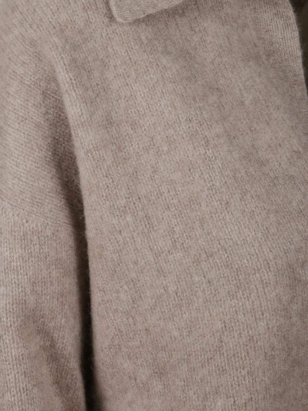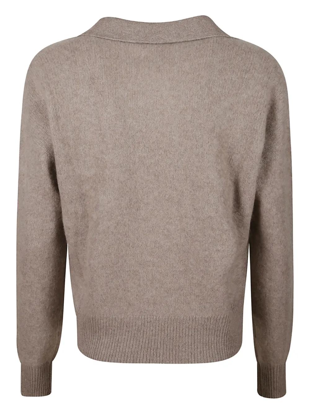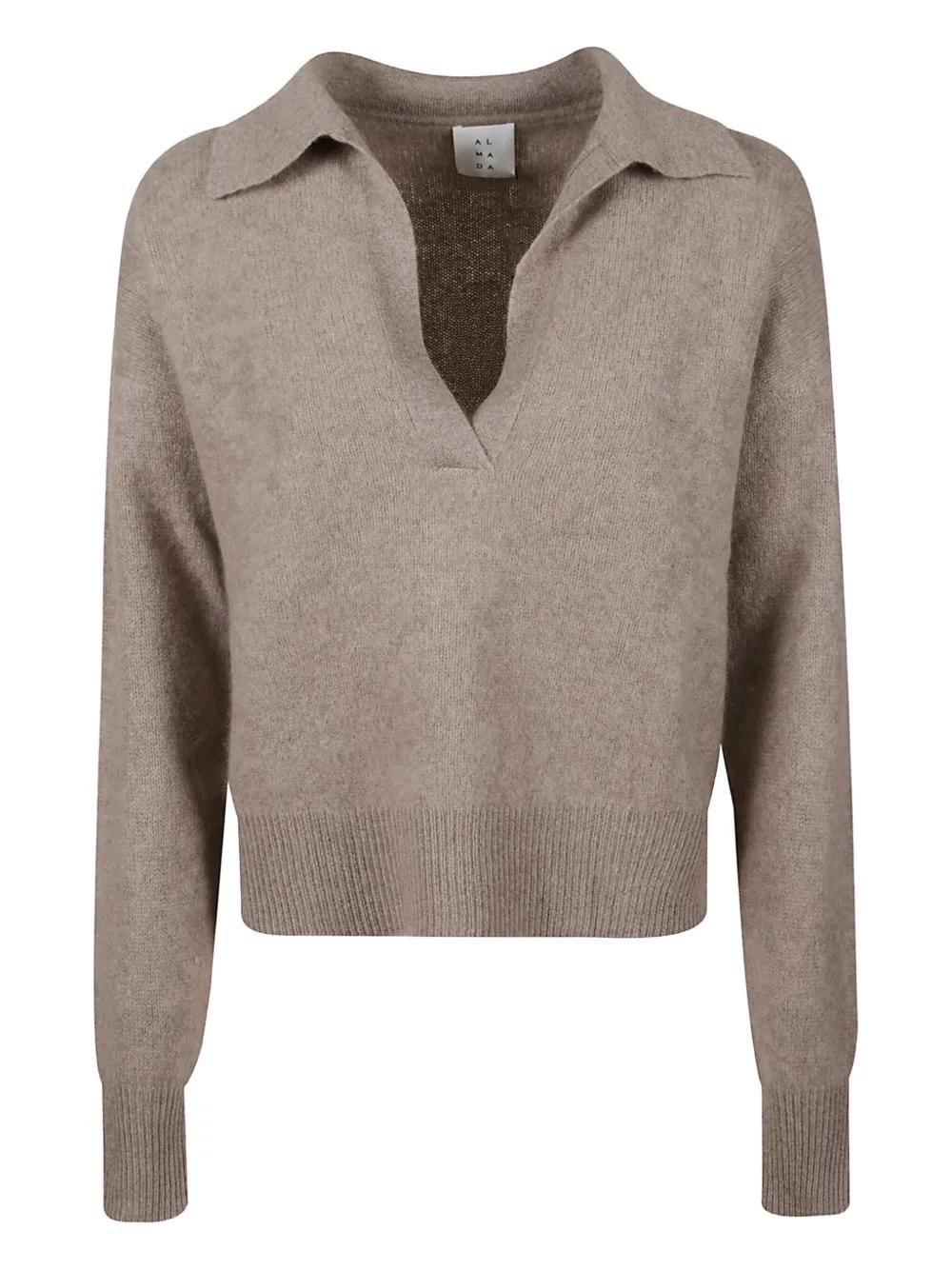 nougat v-neck collared long sleeves ribbed hem ribbed cuffs