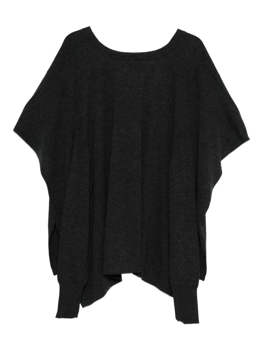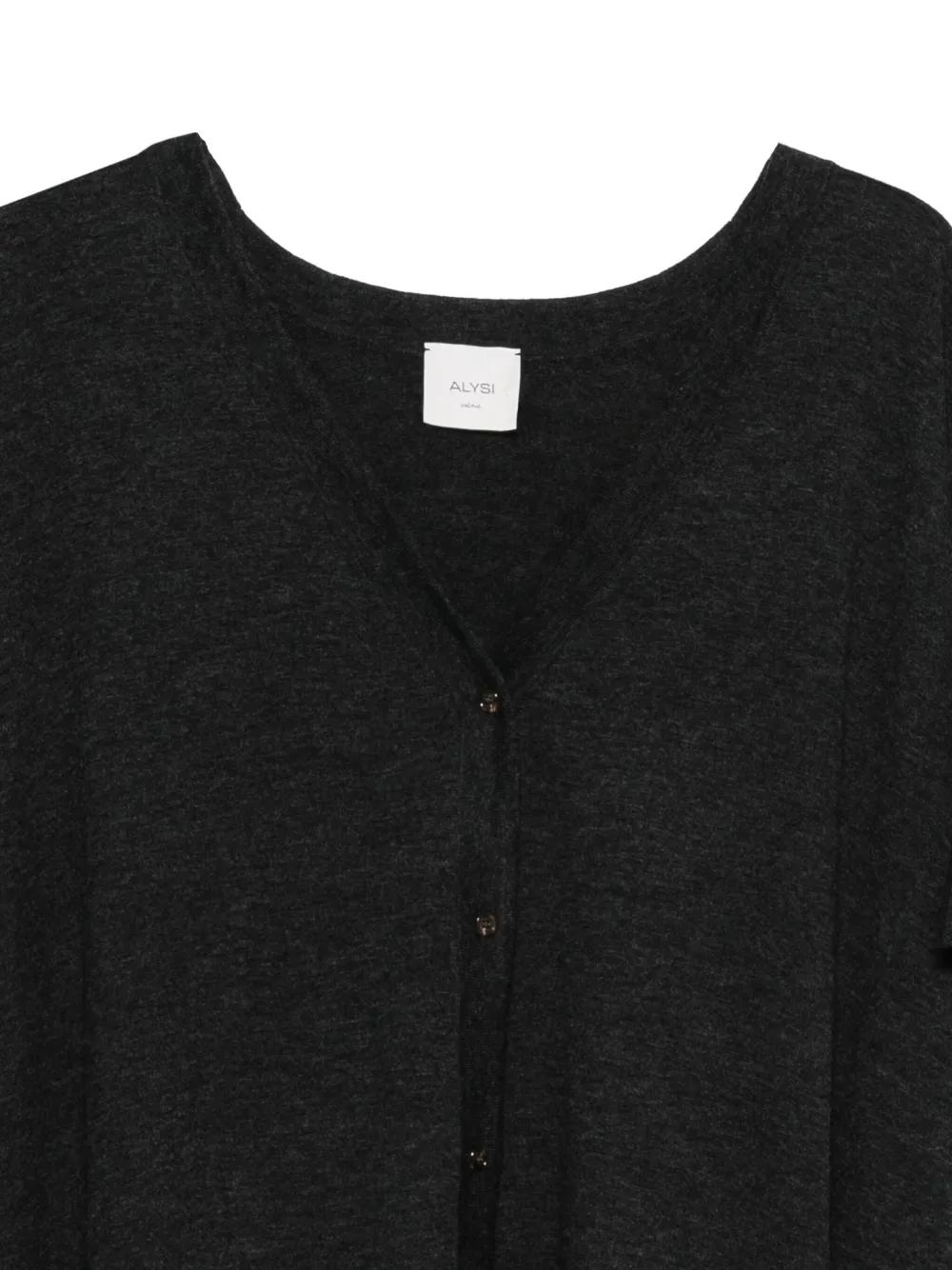grey V-neck button fastening short sleeves asymmetrical hem cotton